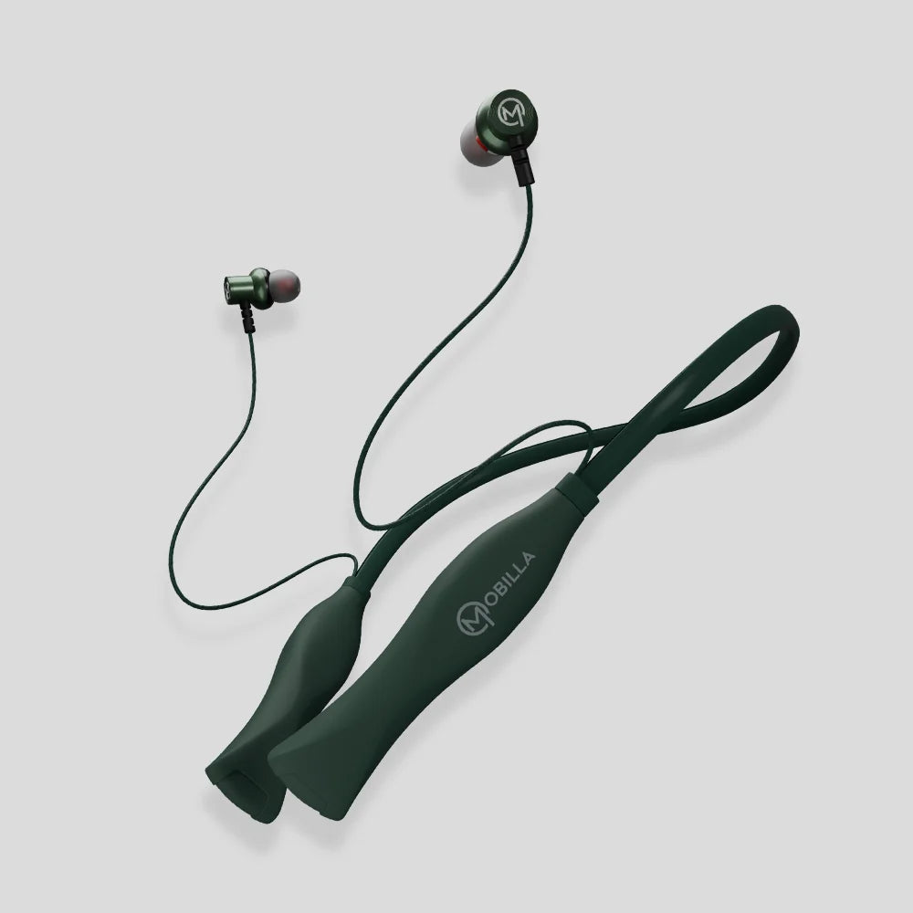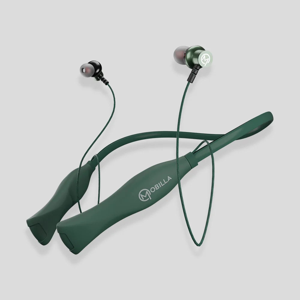 Meet the Mobilla MBuddy 116 – your perfect companion for music, calls, and everything in between! With an impressive 51 hours of music playtime and standby time up to 450 hours, this wireless earphone neckband with a mic keeps you connected and entertained all day long. Whether you’re listening to your favourite playlist or switching to an important call, the instant auto-connect feature makes it effortless. Enjoy a secure and snug fit with a lightweight design that is perfect for any activity. The 10mm dynamic drivers deliver immersive sound that elevates every beat, making the MBuddy 116 the neckband with the best quality sound. With fast charging capability, this fast-charging neckband keeps you powered up in no time. The Bluetooth Version 5.0 provides a reliable 10m transmission range for uninterrupted listening. Available in a range of colours – Ash Grey, Shadow Grey, Midnight Blue, Forest Green, and Charcoal Black – there's a style to match every personality. Looking to buy lightweight neckband earphones online? The Mobilla MBuddy 116 is the best neckband for calling and music. It combines superior sound quality, comfort, and style, making it the ultimate choice for those seeking a branded neckband with top-notch performance. Get yours now and experience the best in wireless freedom!