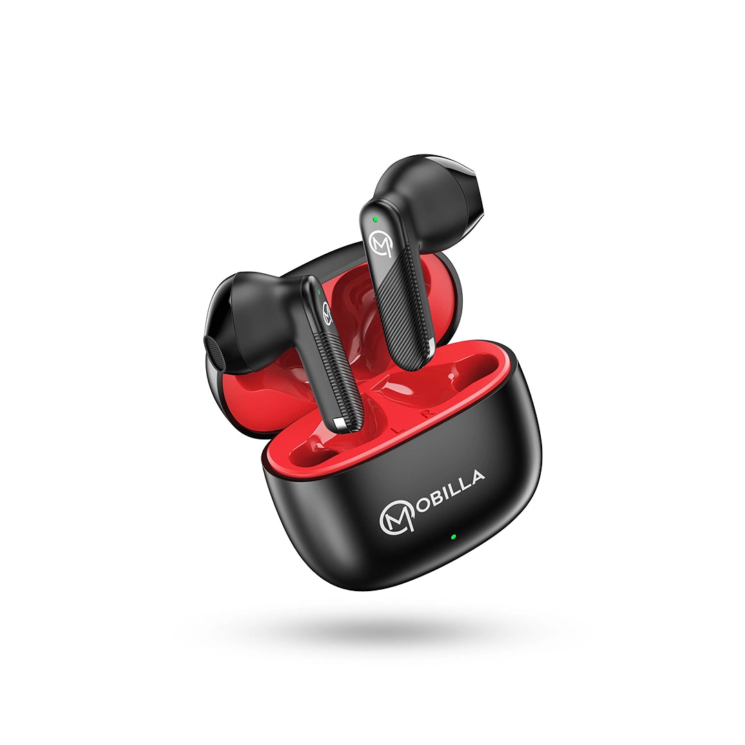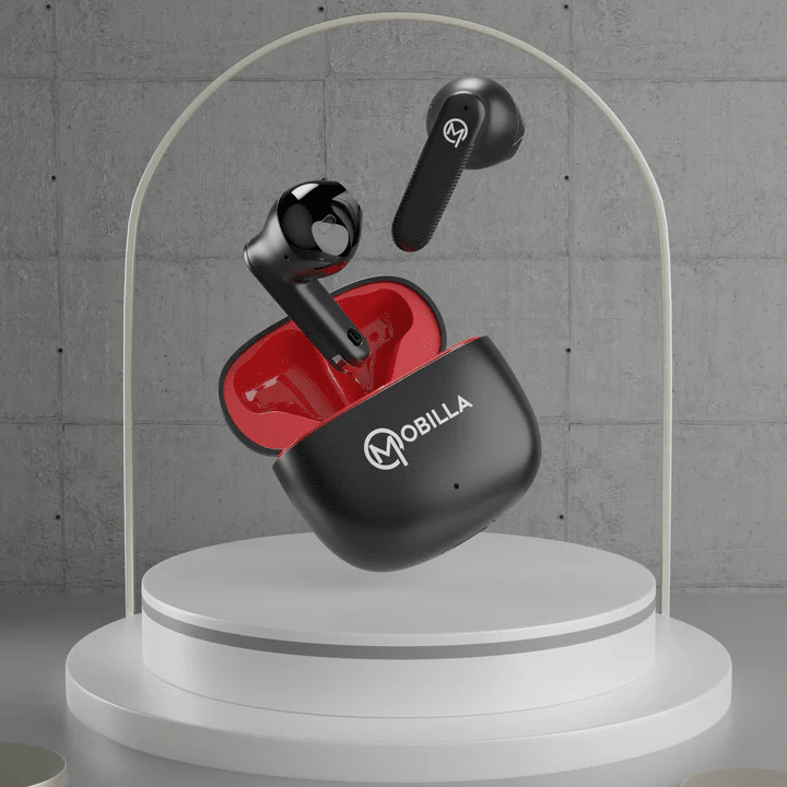 Experience superior sound quality and convenience with Mobilla MBuds 106 – the perfect TWS earbuds for both calls and music. Whether you’re commuting, working out, or simply enjoying your favourite tracks, these half in-ear earbuds offer a seamless listening experience with up to 25 hours of music playtime. Featuring instant auto connect and Bluetooth V5.3, the MBuds 106 ensures a stable and fast wireless connection with a 10M wireless range for uninterrupted music and calls. The 13mm drivers deliver powerful, crystal-clear audio, while the environmental noise cancellation provides enhanced clarity for earbuds with good call quality. Designed for comfort and convenience, the MBuds 106 are IPX4 sweat-resistant, making them ideal for workouts or any weather condition. With fast charging and a Type-C charging port, a quick charge will get you back to your playlist in no time. Available in black-red and white-grey, choose the colour that suits your style best. Looking for the best earbuds for calls and music? The Mobilla MBuds 106 ticks all the boxes. Buy these earbuds online and enjoy the ultimate combination of style, comfort, and performance with these fast-charging earbuds – your true wireless companion for every moment!