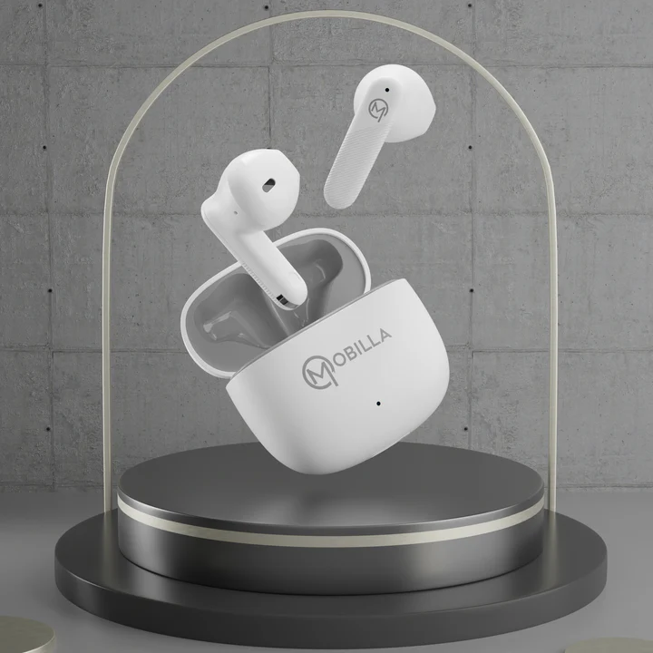Experience superior sound quality and convenience with Mobilla MBuds 106 – the perfect TWS earbuds for both calls and music. Whether you’re commuting, working out, or simply enjoying your favourite tracks, these half in-ear earbuds offer a seamless listening experience with up to 25 hours of music playtime. Featuring instant auto connect and Bluetooth V5.3, the MBuds 106 ensures a stable and fast wireless connection with a 10M wireless range for uninterrupted music and calls. The 13mm drivers deliver powerful, crystal-clear audio, while the environmental noise cancellation provides enhanced clarity for earbuds with good call quality. Designed for comfort and convenience, the MBuds 106 are IPX4 sweat-resistant, making them ideal for workouts or any weather condition. With fast charging and a Type-C charging port, a quick charge will get you back to your playlist in no time. Available in black-red and white-grey, choose the colour that suits your style best. Looking for the best earbuds for calls and music? The Mobilla MBuds 106 ticks all the boxes. Buy these earbuds online and enjoy the ultimate combination of style, comfort, and performance with these fast-charging earbuds – your true wireless companion for every moment!