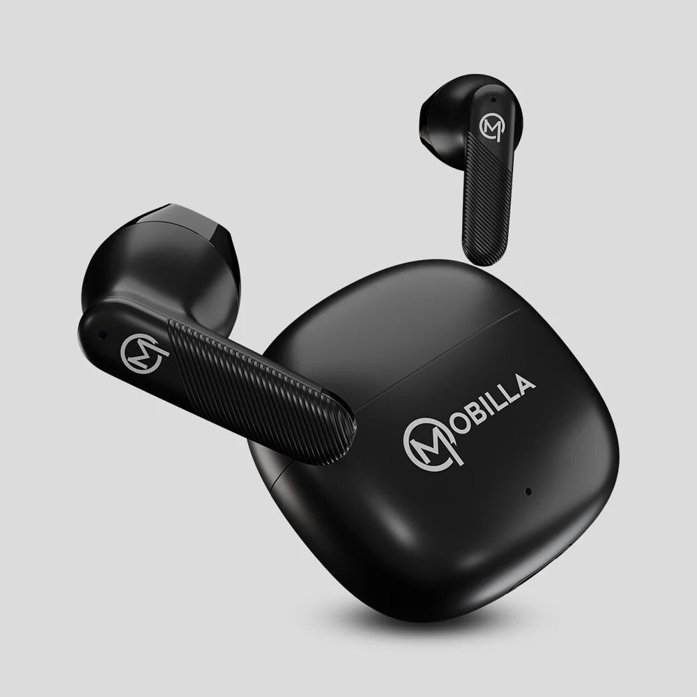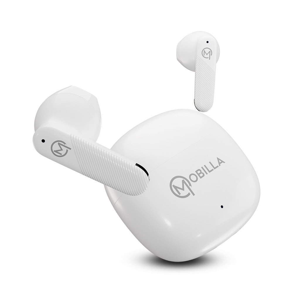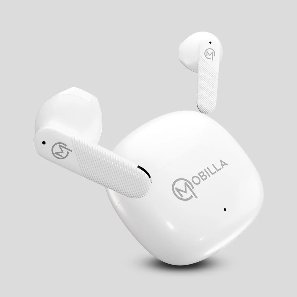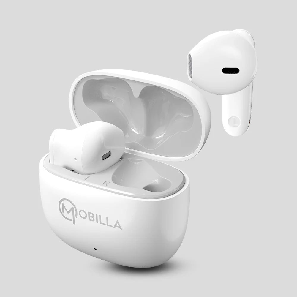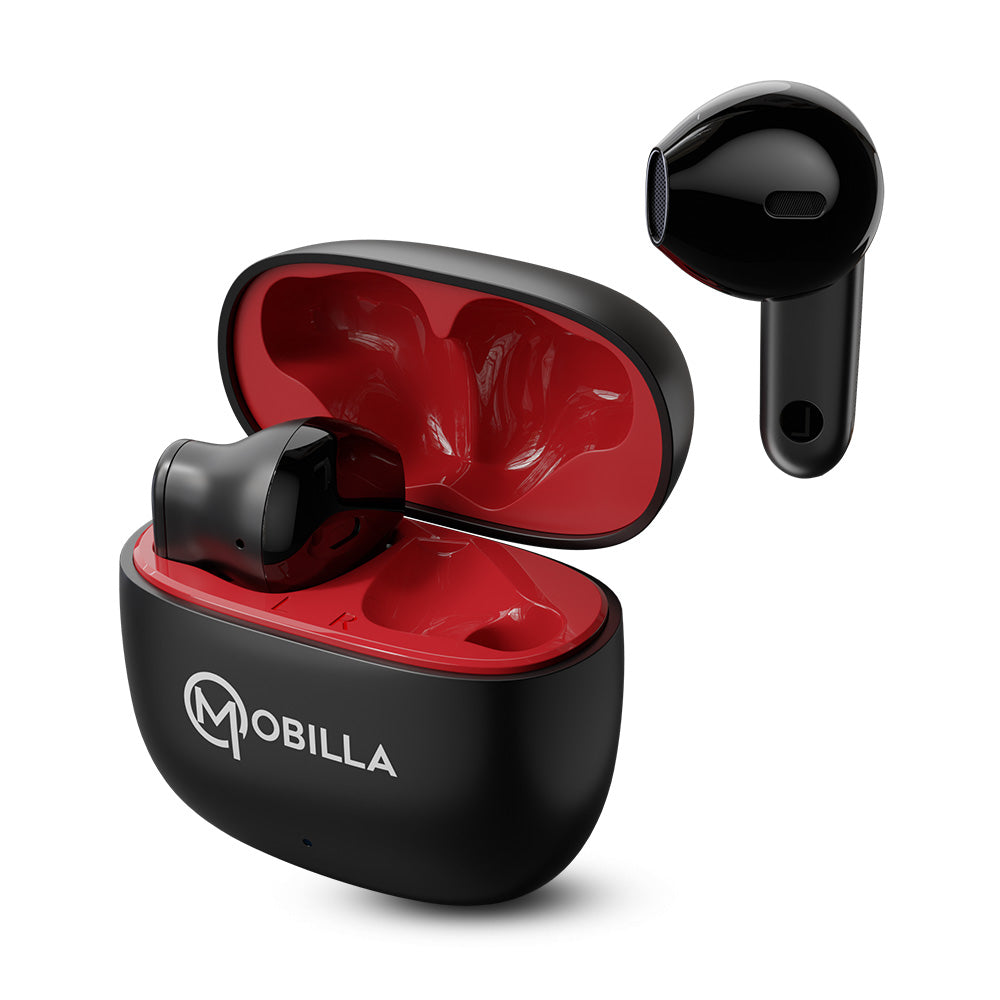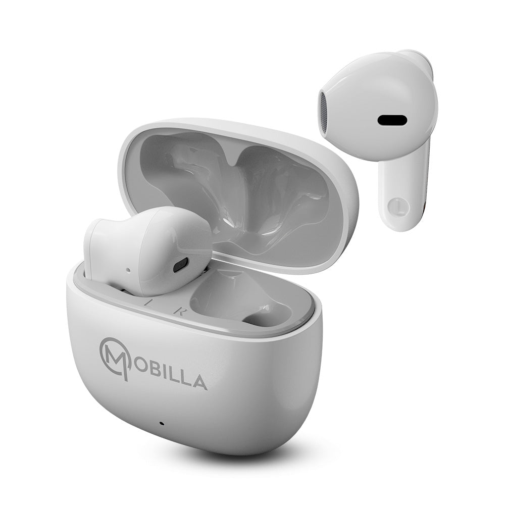 Experience superior sound quality and convenience with Mobilla MBuds 106 – the perfect TWS earbuds for both calls and music. Whether you’re commuting, working out, or simply enjoying your favourite tracks, these half in-ear earbuds offer a seamless listening experience with up to 25 hours of music playtime. Featuring instant auto connect and Bluetooth V5.3, the MBuds 106 ensures a stable and fast wireless connection with a 10M wireless range for uninterrupted music and calls. The 13mm drivers deliver powerful, crystal-clear audio, while the environmental noise cancellation provides enhanced clarity for earbuds with good call quality. Designed for comfort and convenience, the MBuds 106 are IPX4 sweat-resistant, making them ideal for workouts or any weather condition. With fast charging and a Type-C charging port, a quick charge will get you back to your playlist in no time. Available in black-red and white-grey, choose the colour that suits your style best. Looking for the best earbuds for calls and music? The Mobilla MBuds 106 ticks all the boxes. Buy these earbuds online and enjoy the ultimate combination of style, comfort, and performance with these fast-charging earbuds – your true wireless companion for every moment!