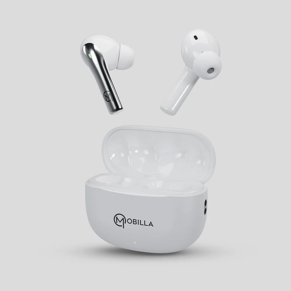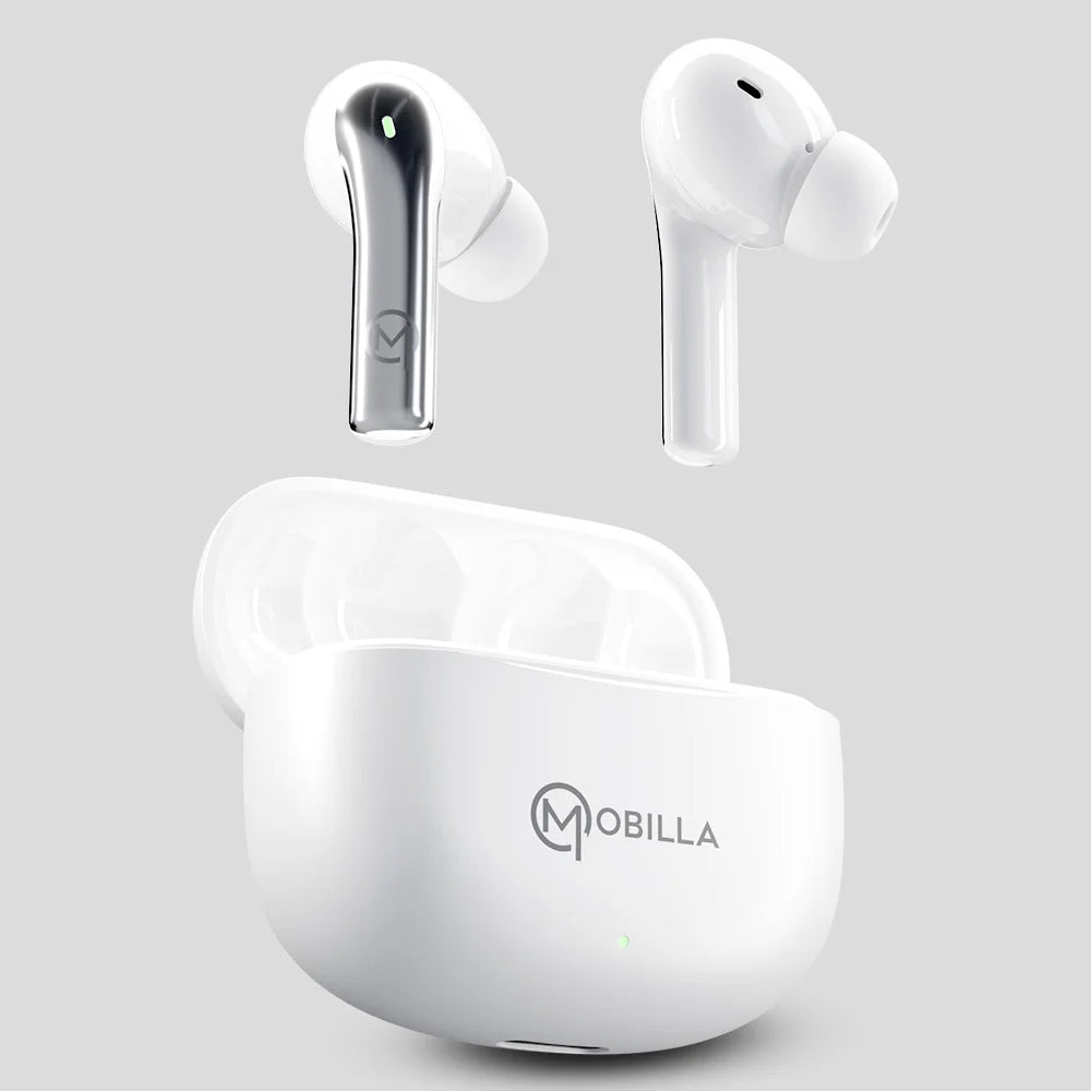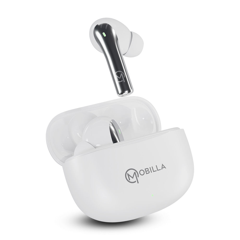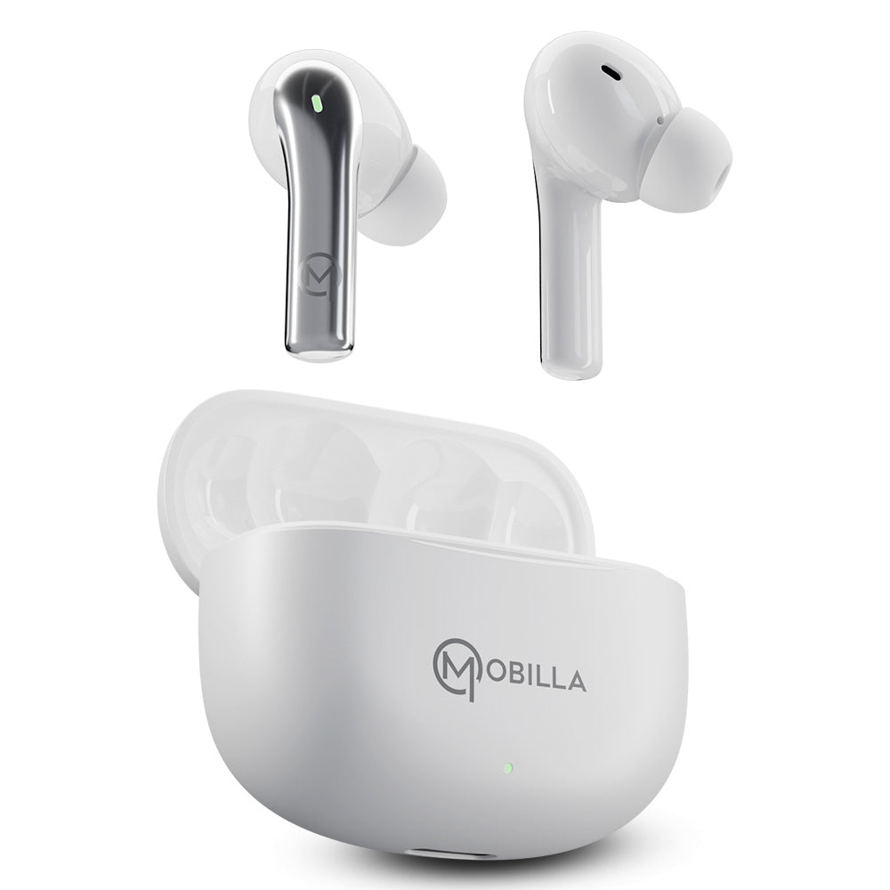 Get ready for an unbeatable audio experience with the Mobilla MBuds 151 – the ultimate TWS earbuds designed for every lifestyle! With music playtime of up to 50 hours, you can enjoy non-stop entertainment, whether you're commuting, working, or hitting the gym. Tailor your sound with 3 preset EQ modes – choose between Theatre, Bass, or Balanced for the perfect listening experience. Plus, with ENC (Environmental Noise Cancellation) and passive noise cancellation, these environmental noise-cancelling earbuds deliver crystal clear calls and immersive sound quality, even in noisy environments. The MBuds 151 are gaming-ready with an impressive 40ms low latency for a lag-free gaming experience, making them the ideal gaming earbuds. The quick charging feature and Type-C charging interface keep you powered up and ready to go in no time. With IPX4 water and sweat resistance, these in-ear earbuds are built to handle any workout or weather condition. The intuitive touch control makes managing your music and calls easy, while Bluetooth Version 5.3 ensures a strong and stable connection. Available in two stylish colours – Dove White and Phantom Black – the MBuds 151 are the best earbuds for calls and music, and they are perfect for anyone looking for fast & quick charging earbuds. Don’t wait – buy earbuds online today and elevate your audio game with these true wireless companions!