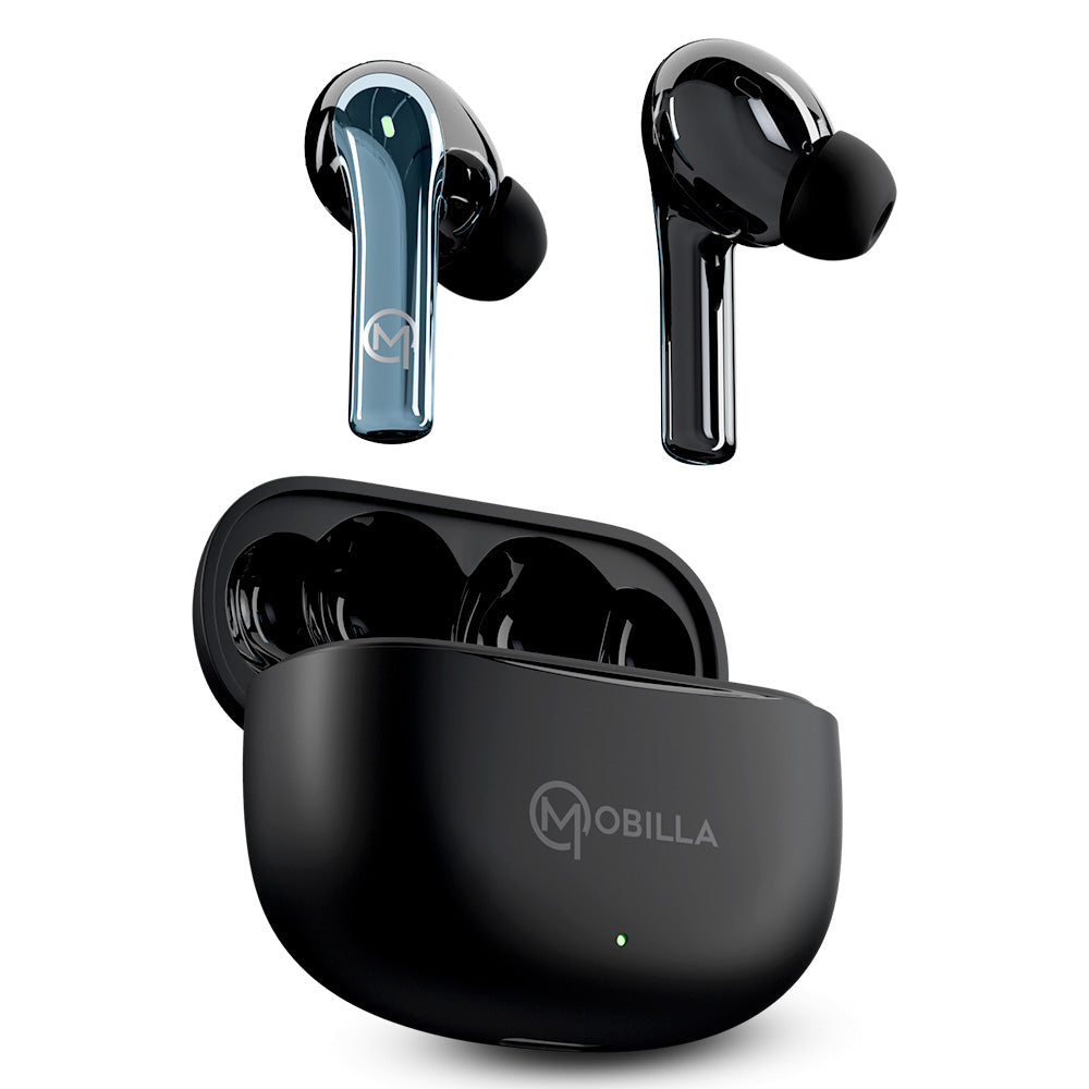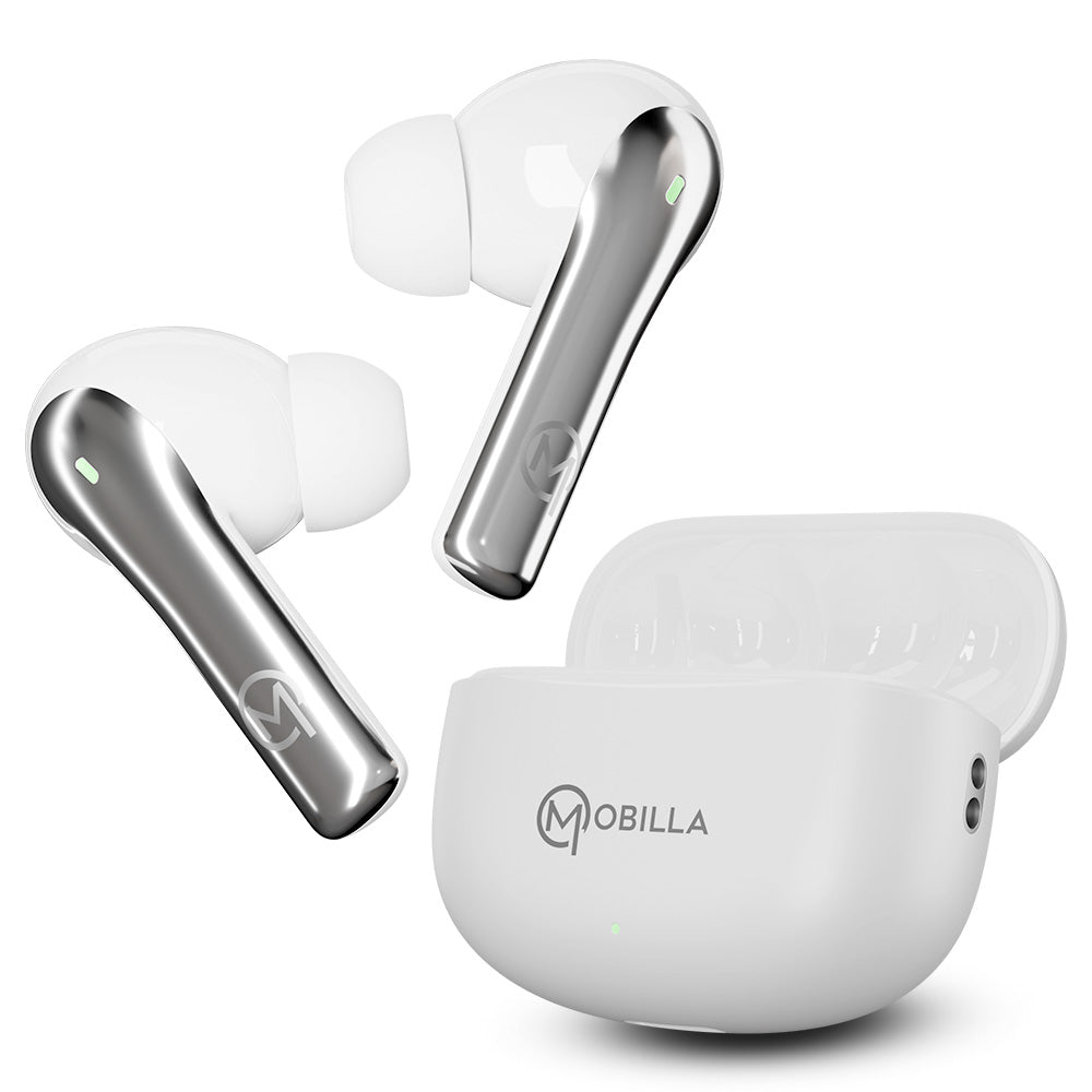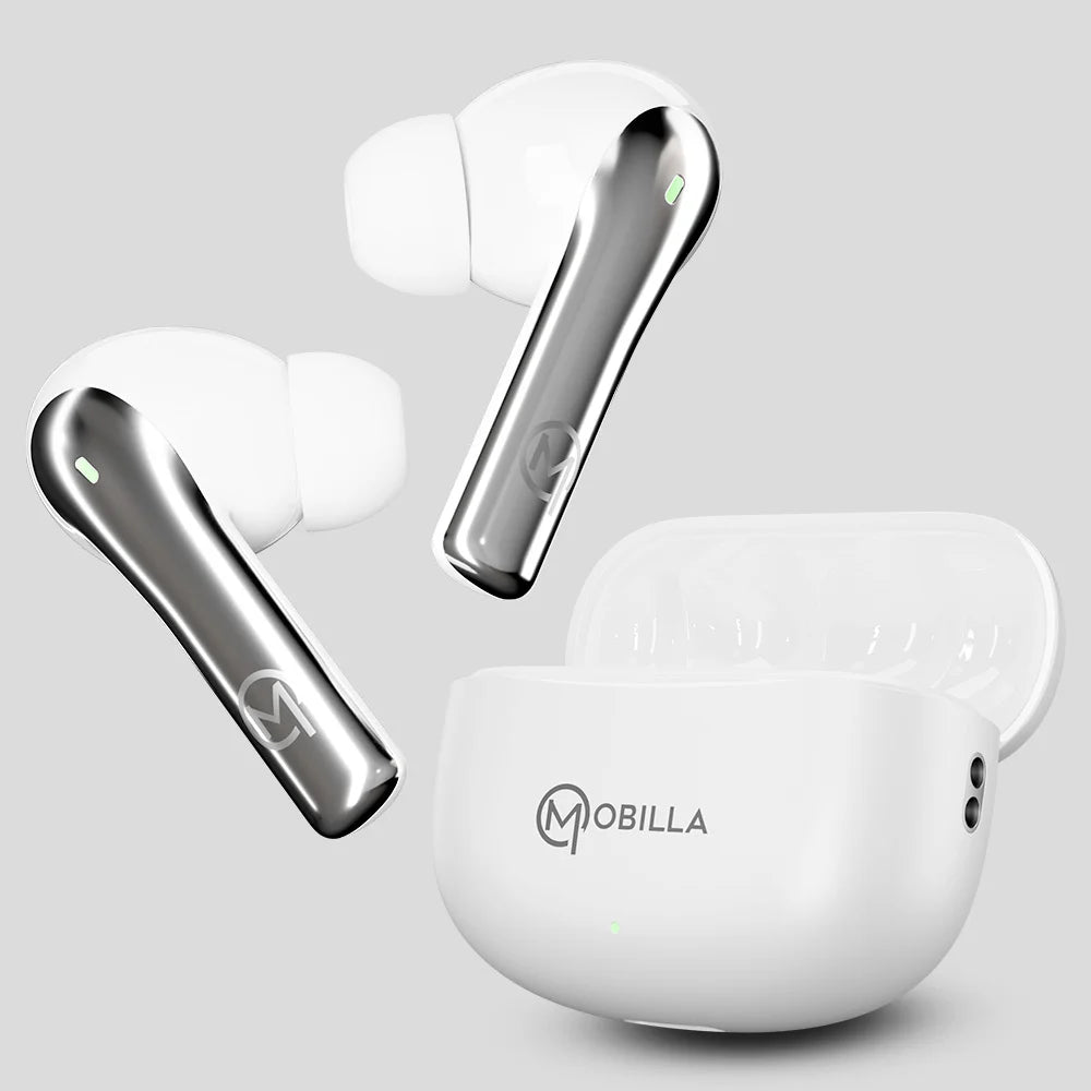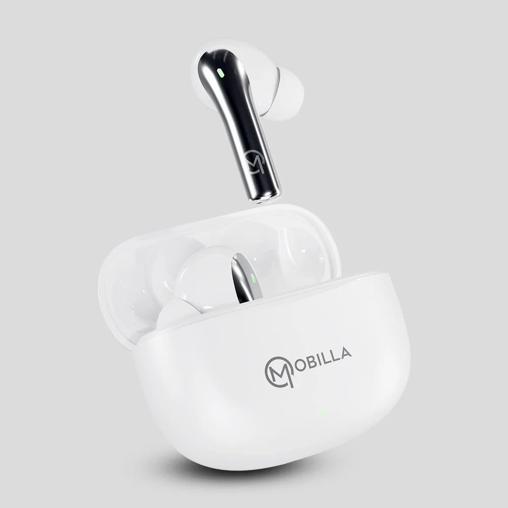 Get ready for an unbeatable audio experience with the Mobilla MBuds 151 – the ultimate TWS earbuds designed for every lifestyle! With music playtime of up to 50 hours, you can enjoy non-stop entertainment, whether you're commuting, working, or hitting the gym. Tailor your sound with 3 preset EQ modes – choose between Theatre, Bass, or Balanced for the perfect listening experience. Plus, with ENC (Environmental Noise Cancellation) and passive noise cancellation, these environmental noise-cancelling earbuds deliver crystal clear calls and immersive sound quality, even in noisy environments. The MBuds 151 are gaming-ready with an impressive 40ms low latency for a lag-free gaming experience, making them the ideal gaming earbuds. The quick charging feature and Type-C charging interface keep you powered up and ready to go in no time. With IPX4 water and sweat resistance, these in-ear earbuds are built to handle any workout or weather condition. The intuitive touch control makes managing your music and calls easy, while Bluetooth Version 5.3 ensures a strong and stable connection. Available in two stylish colours – Dove White and Phantom Black – the MBuds 151 are the best earbuds for calls and music, and they are perfect for anyone looking for fast & quick charging earbuds. Don’t wait – buy earbuds online today and elevate your audio game with these true wireless companions!