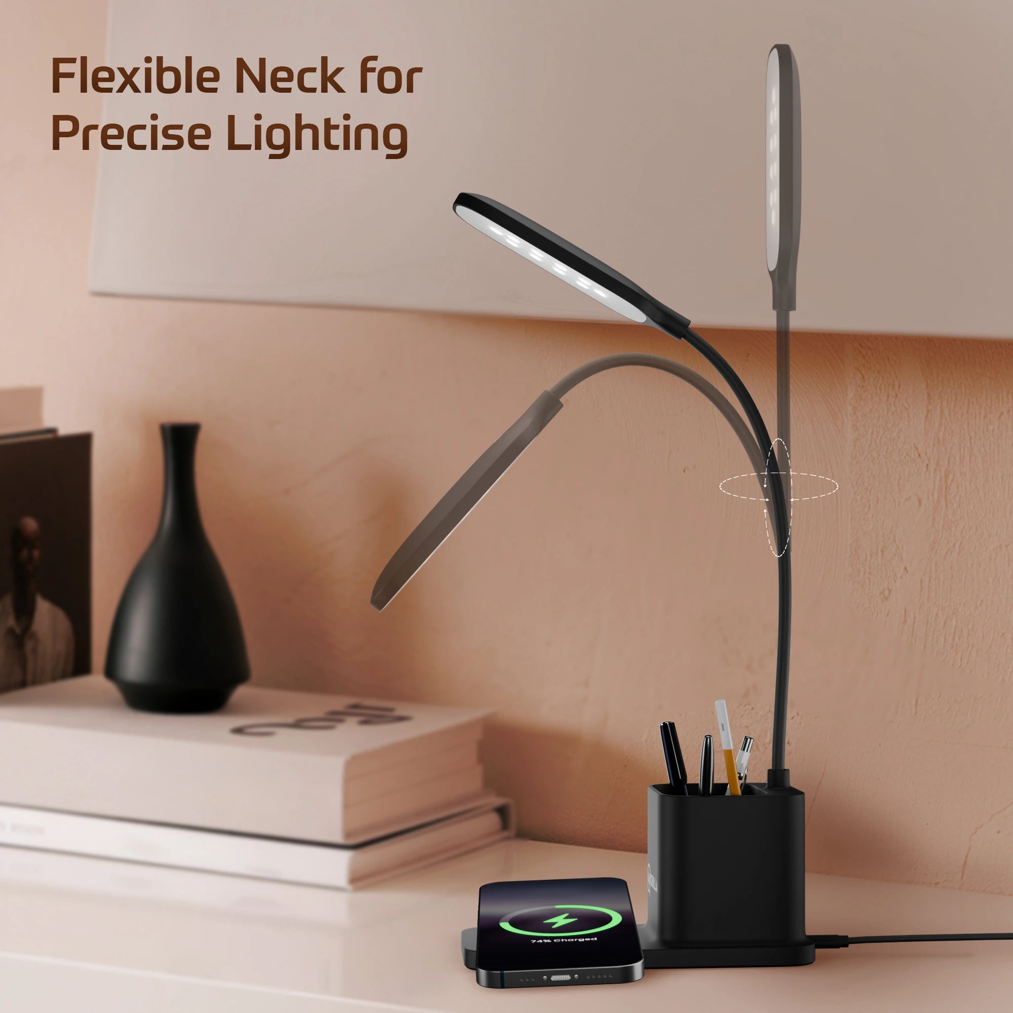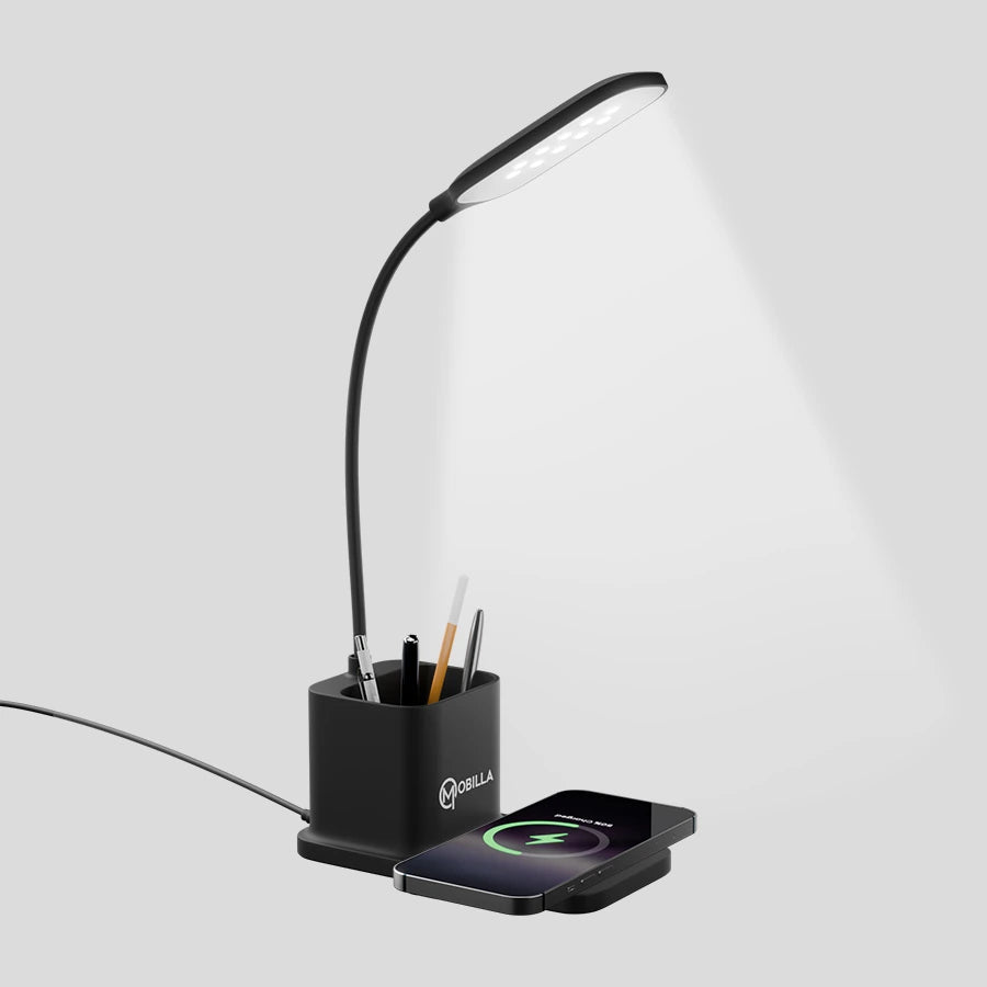 In addition to wireless charging and a bright LED lamp, it includes a pen stand to help keep your workspace neat and organised.