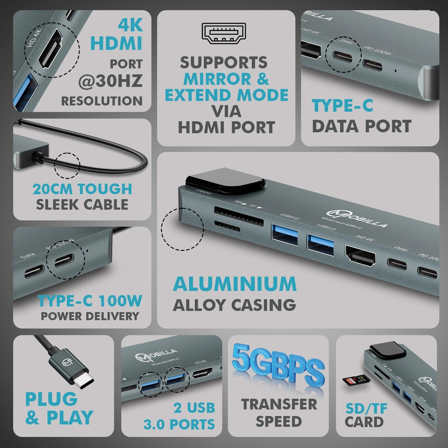 The MConnect MPH4 redefines efficiency with its all-in-one 8 in 1 type C connector design. Featuring a 100W PD charging port, 1000Mbps Ethernet, 4K @30Hz HDMI, SD/TF card reader, USB 3.0, USB 2.0, and Type-C data port, it’s the ultimate USB-C hub for power users. Encased in a premium aluminium alloy body with a smart cooling design and anti-strain cable, this 8 in 1 multi-port hub offers exceptional durability and heat control. From content creators to digital nomads, it delivers seamless connectivity across laptops, tablets, and smartphones. Perfect as a type-C to HDMI adapter, multiple USB connector, type C to USB converter, or a compact USB adapter, the MPH4 packs power and versatility into a lightweight form. Whether you need a reliable USB hub, port hub, or the most adaptable USB c hub, this is your go-to choice for productivity and portability—refined and ready for any workflow.