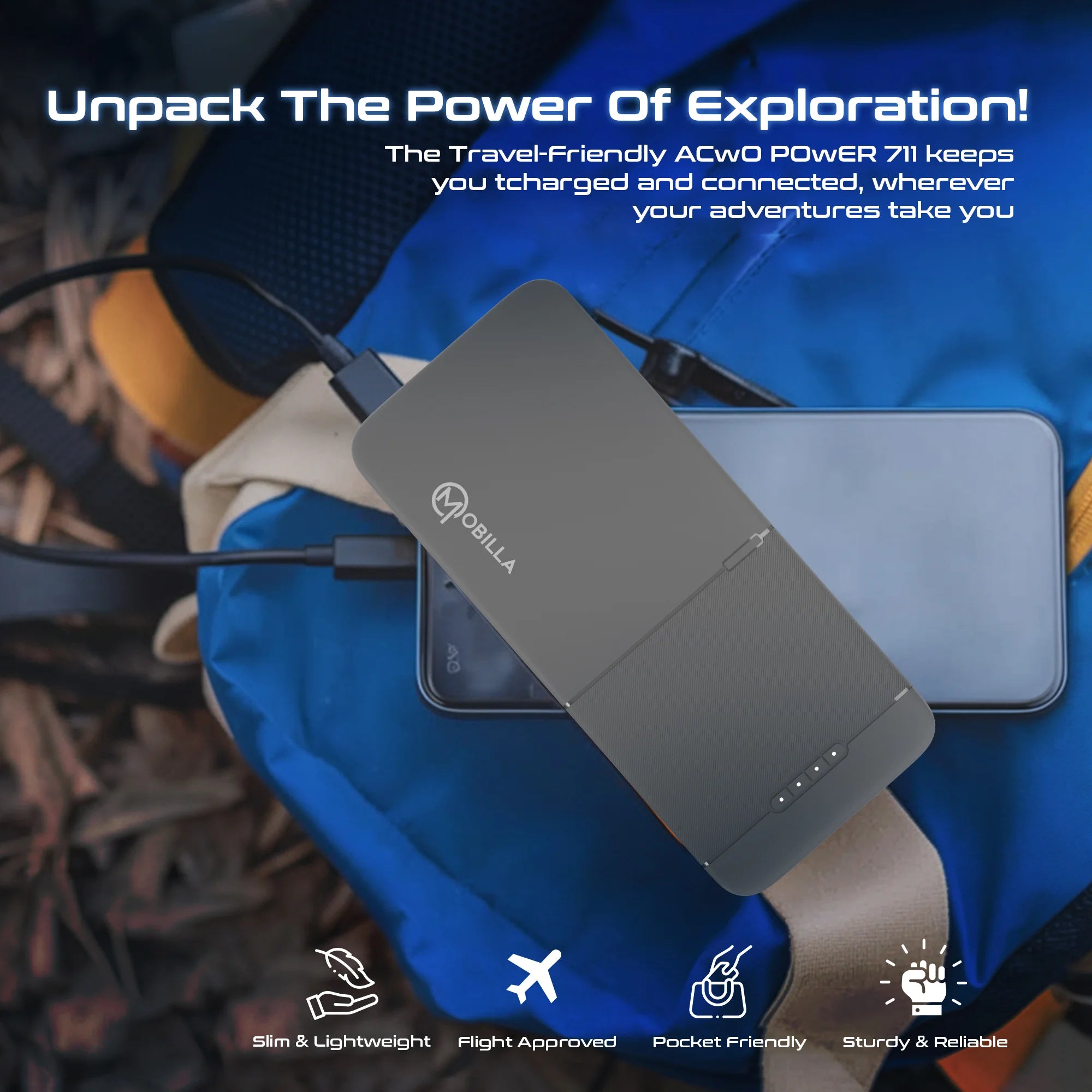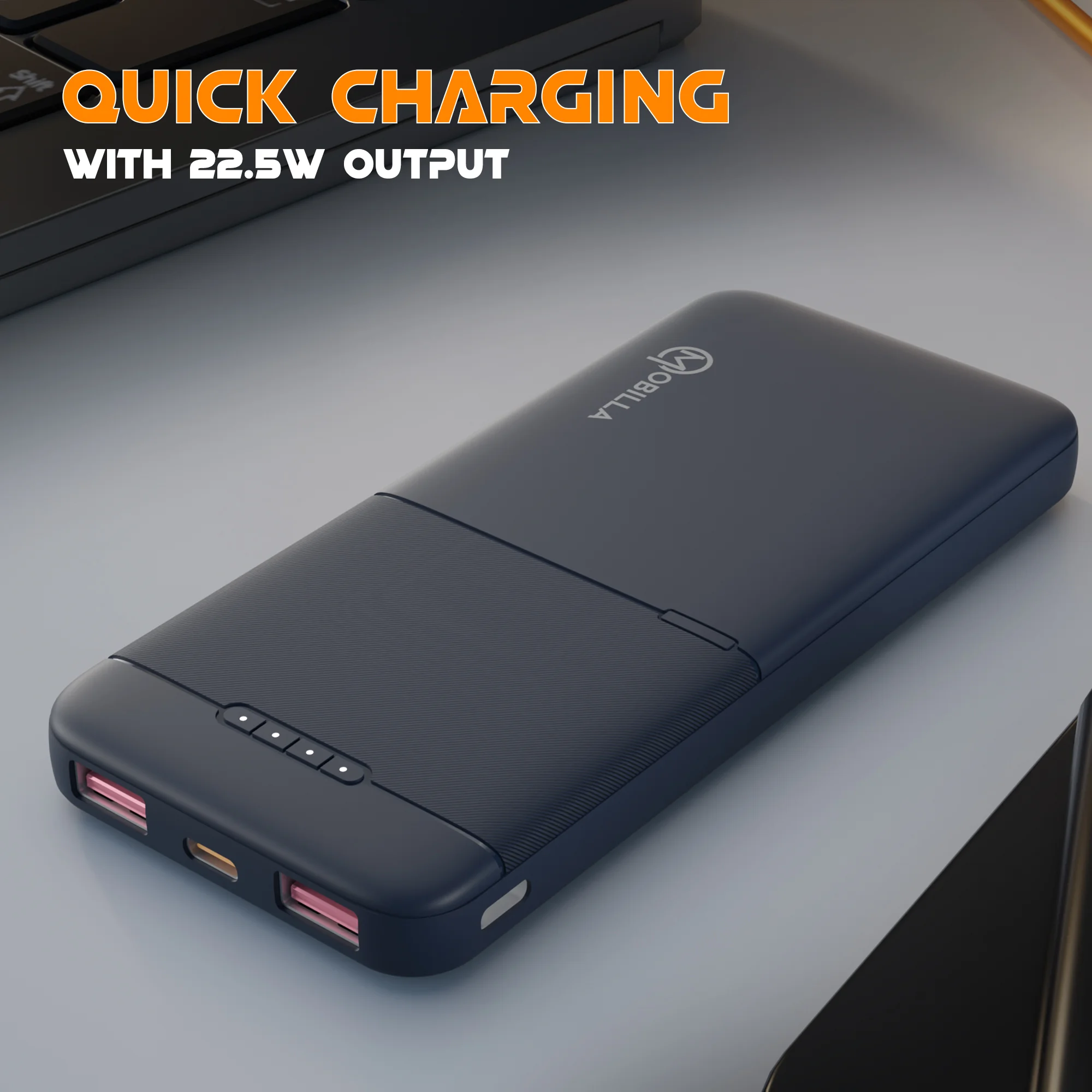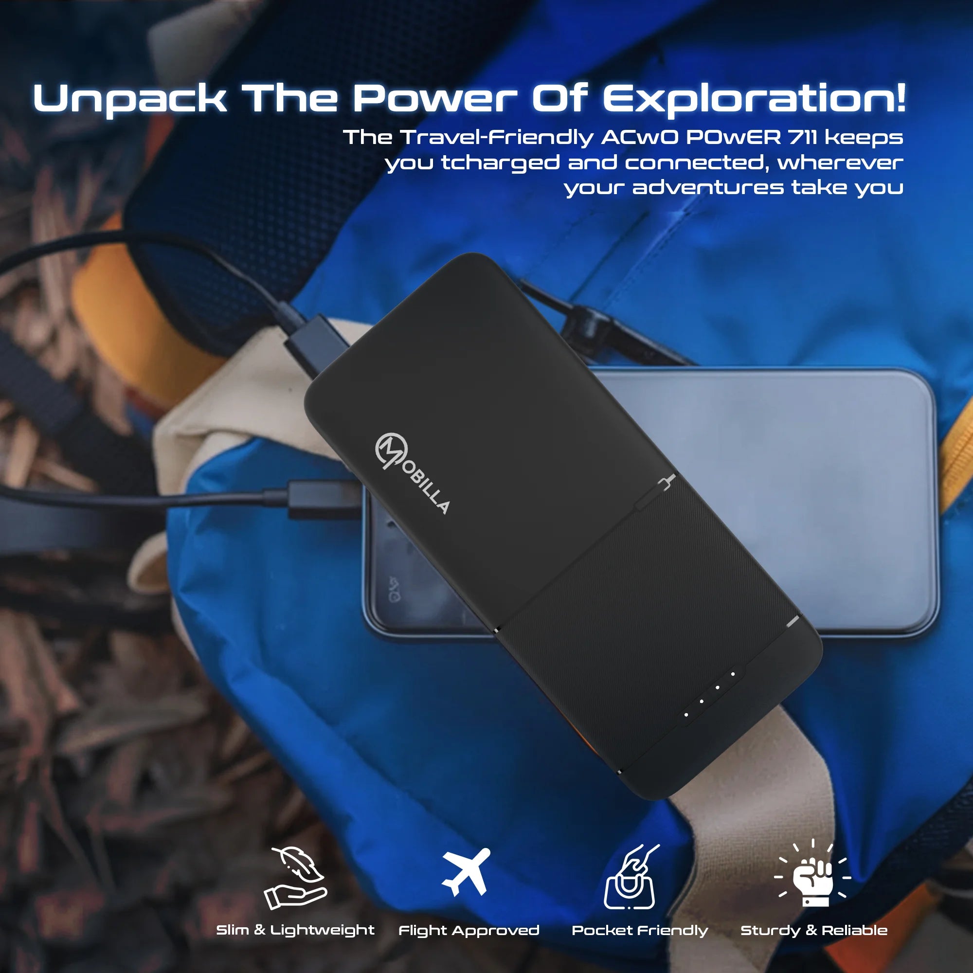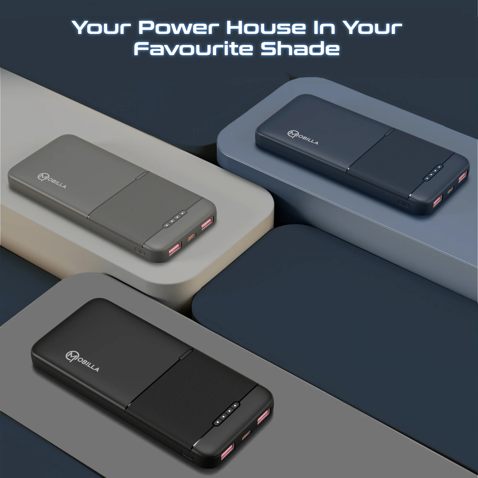 Stay powered up wherever you go with the Mobilla MPower 713 – your ideal pocket-friendly power bank. With a battery capacity of 10000mAh, this slim lightweight 10000mAh power bank ensures you never run out of charge, whether you’re hiking, travelling, or simply on the go. Featuring dual USB ports, the MPower 713 offers universal compatibility, allowing you to charge multiple devices simultaneously. Its anti-slip texture provides a secure grip, making it perfect for any adventure. Plus, its travel-friendly design fits easily into your bag or pocket. Available in a range of stylish colours – Grease Black, Junglee Green, and Royal Blue – this rapid charge power bank combines functionality with flair. Whether you’re looking to buy a power bank 10000mAh online or need a reliable power bank for travel, the MPower 713 is your go-to choice. Choose Mobilla for a branded power bank that delivers both performance and style. Power up with the MPower 713 today!