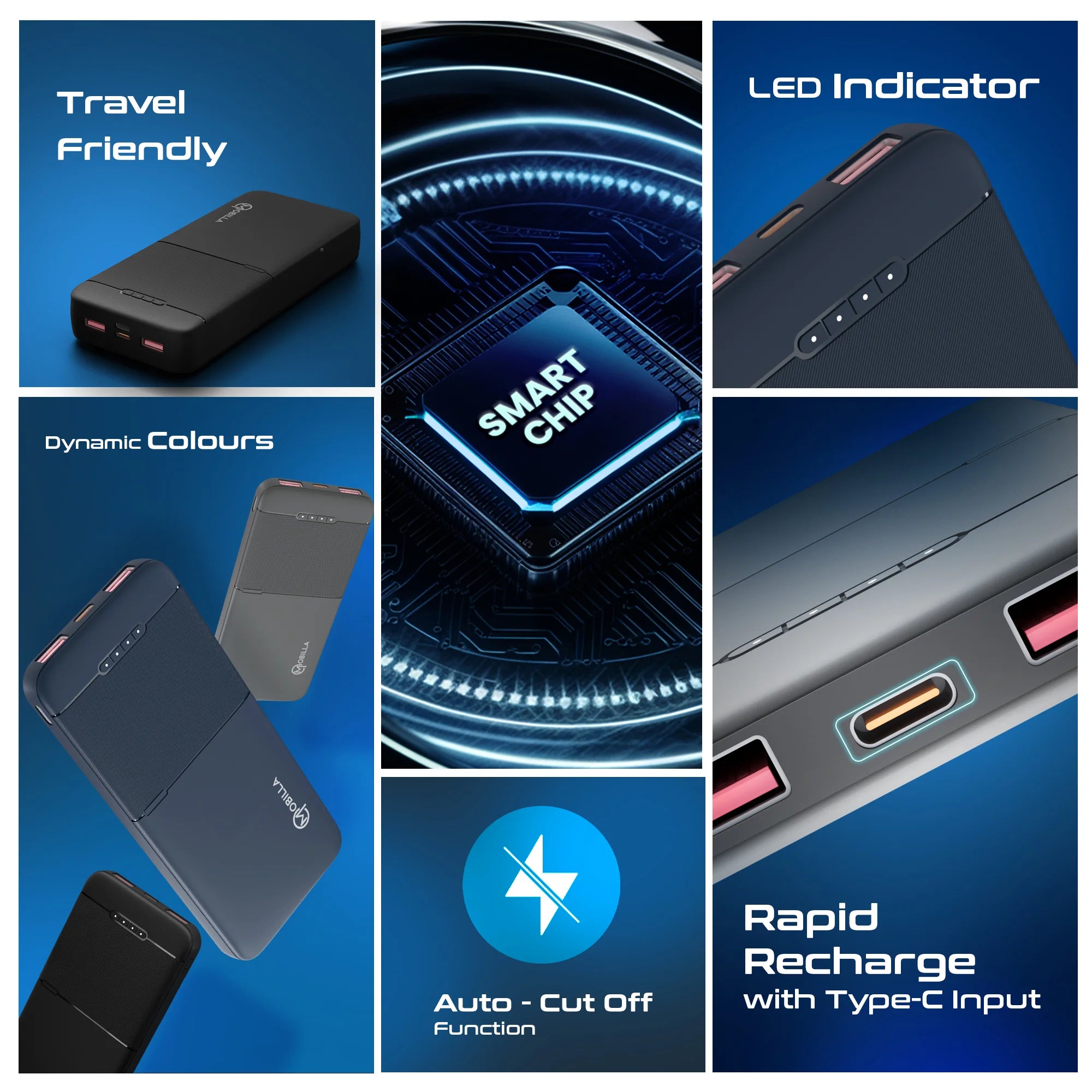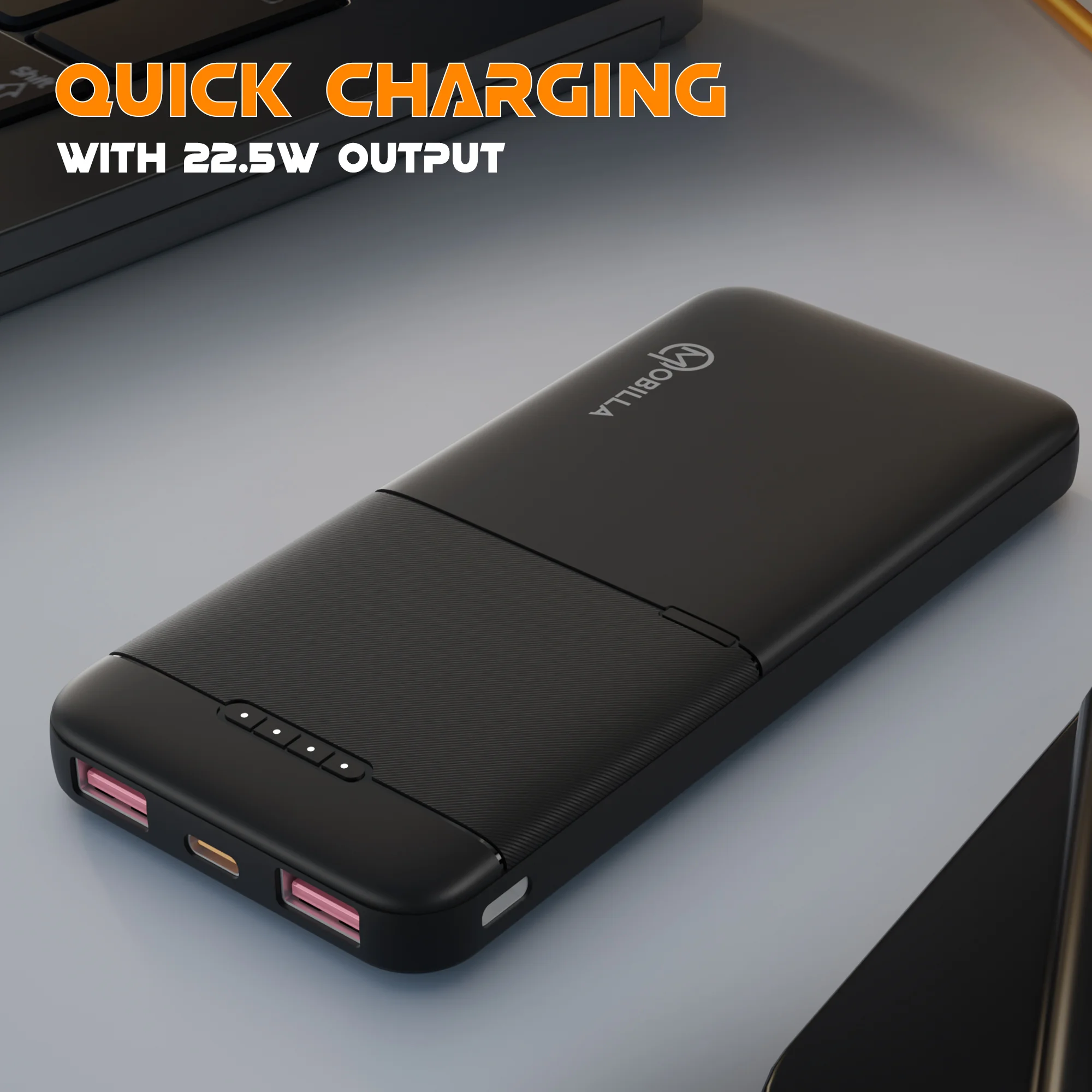 Battery Capacity: 10000mAh | 22.5W Power Output| Dual USB Ports | Fast Charging | Universal Compatibility | Travel Friendly | Anti Slip Texture | 3 in 1 Charging Ports | Sleed & Sturdy Design | Light Weight | Flight Approved | LED Indicator