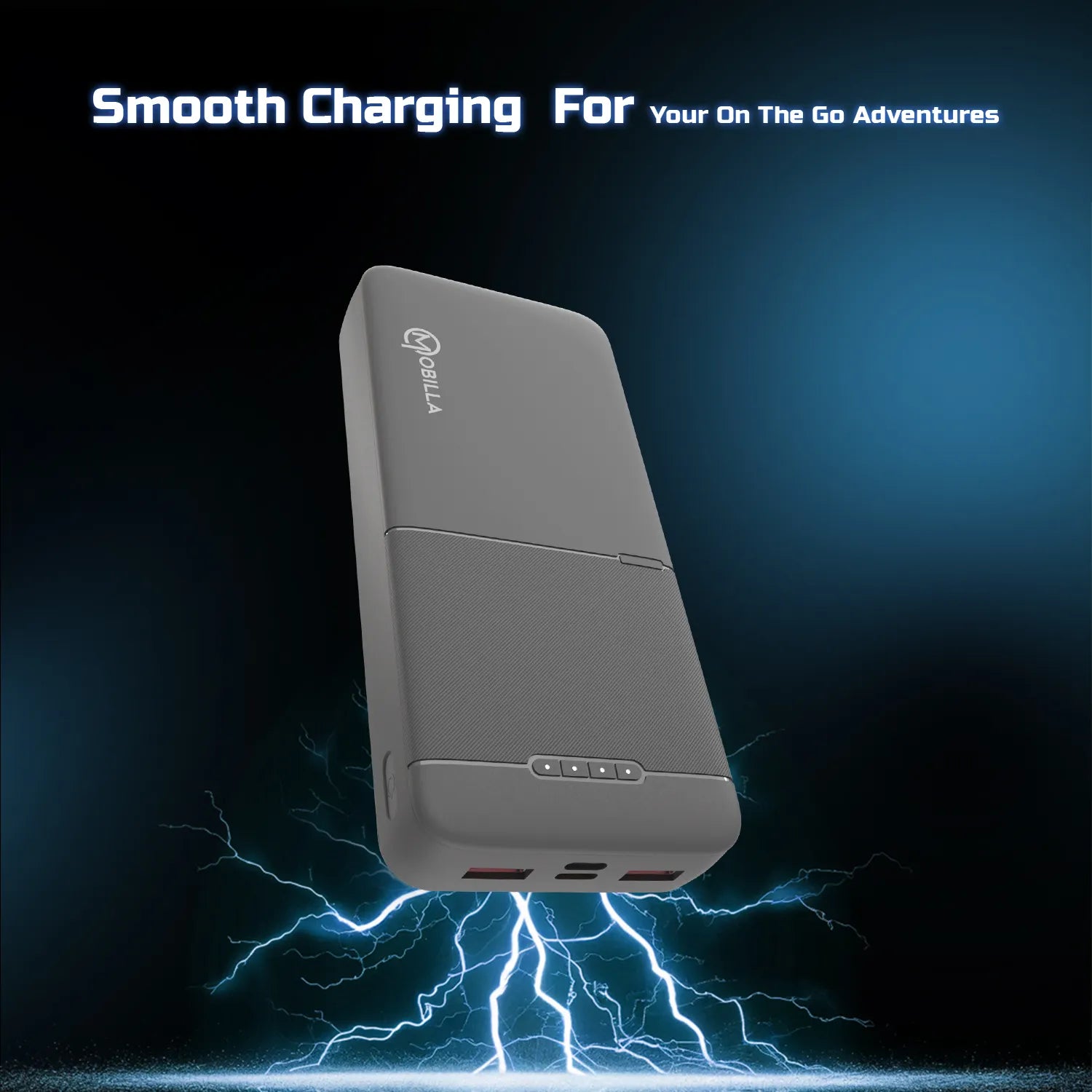 Meet the Mobilla MPower 723 – your ultimate solution for staying powered up on the go. With an impressive battery capacity of 20000mAh, this power bank for long-lasting use is perfect for keeping your smartphone, mobile, and tablet charged through your busiest days. Featuring dual USB ports, the MPower 723 offers universal compatibility, allowing you to charge multiple devices simultaneously. Its travel-friendly design and anti-slip texture ensure it remains secure in your hand or bag, making it the ideal choice for adventures and everyday use. Available in sleek colours – Grease Black, Junglee Green, and Royal Blue – this slim lightweight power bank balances both style and functionality. Whether you’re looking to buy a power bank 20000mAh online or need a pocket-friendly power bank for hiking and travel, the MPower 723 delivers reliable performance. Choose Mobilla for a branded power bank that combines power, style, and convenience. Power up with the MPower 723 today!