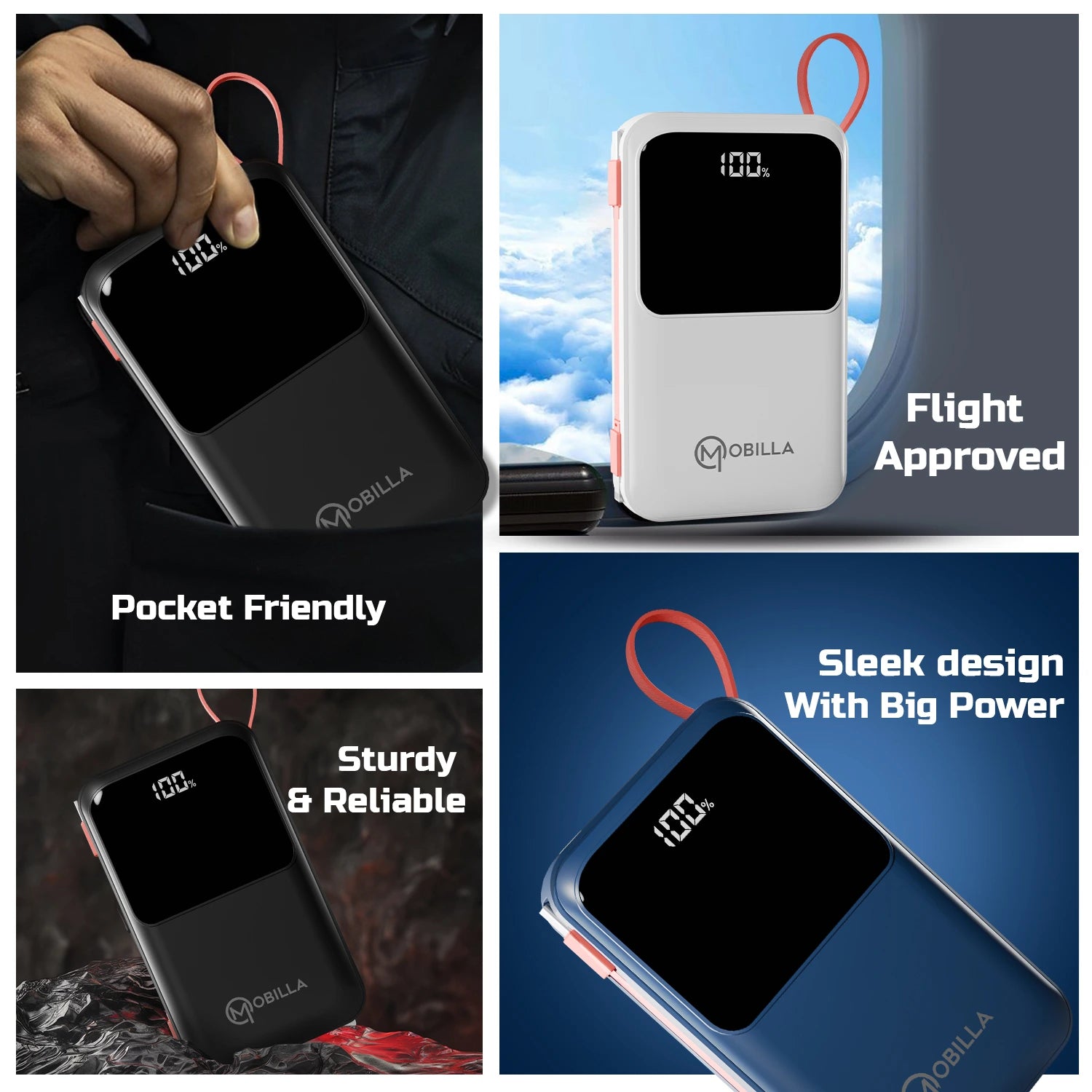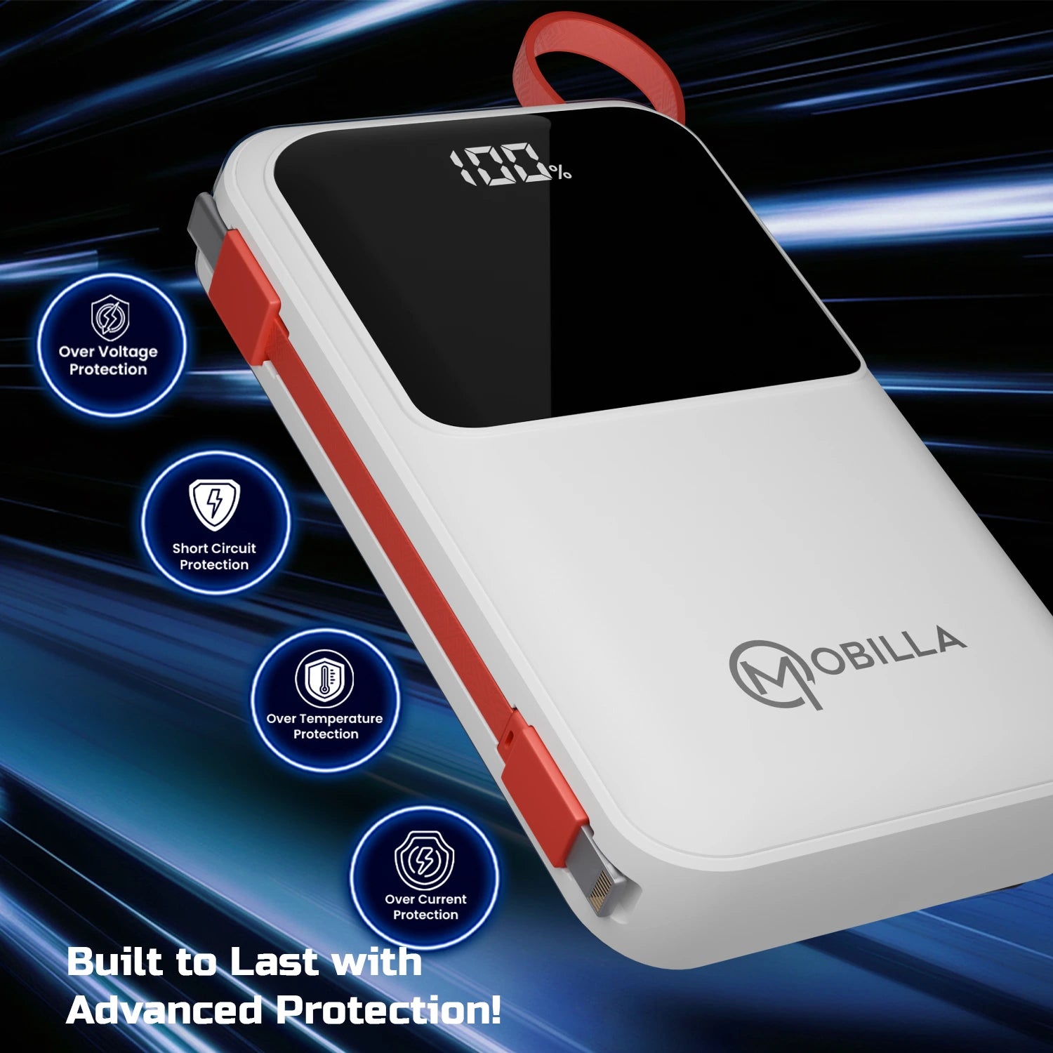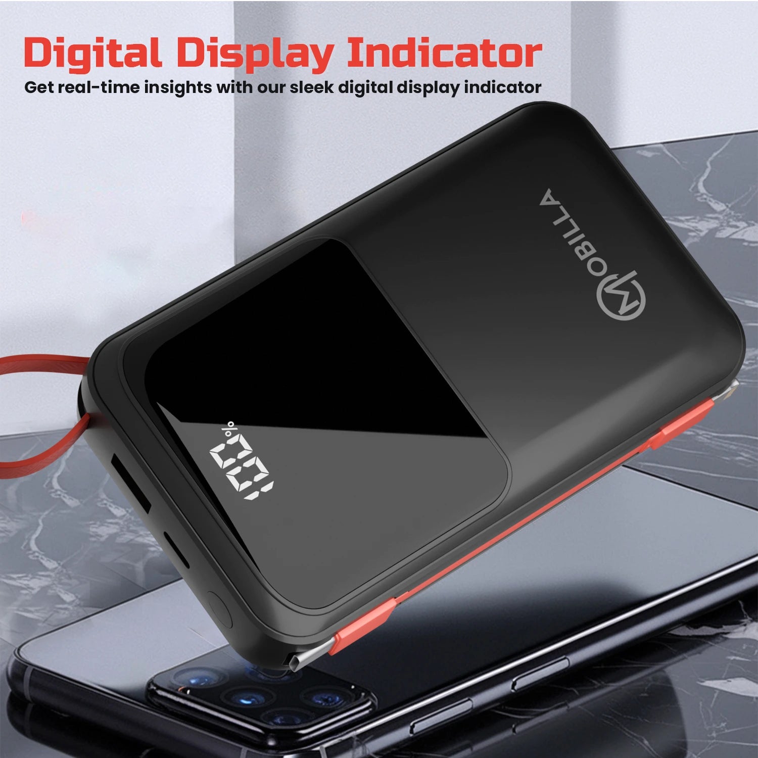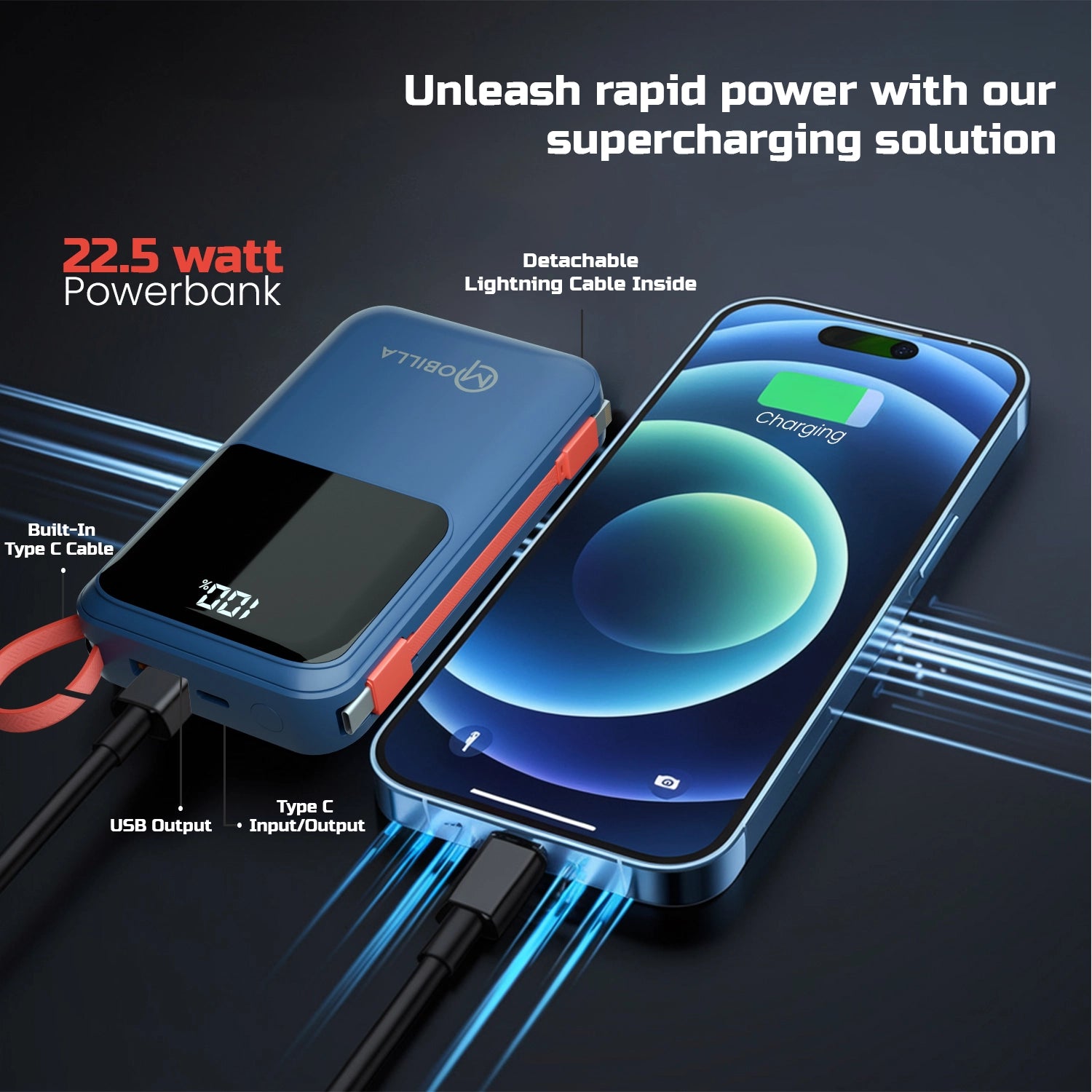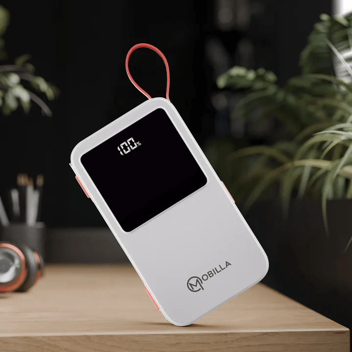 Take your charging experience to the next level with the Mobilla MPower 725, a 20000mAh fast-charging power bank that seamlessly blends performance with portability. Its high-capacity 20000mAh battery keeps your devices powered up wherever you go. Equipped with a built-in Type-C cable and a 22.5W output, it delivers lightning-fast charging for all your essentials. The anti-slip texture ensures a secure grip, while the digital display indicator keeps you updated on the remaining battery life. Designed for universal compatibility, the MPower 725 is perfect for smartphones, tablets, and more. Its slim, lightweight build makes it the ideal travel power bank, fitting effortlessly into your on-the-go lifestyle. Whether you’re searching for a reliable power bank for hiking or need to buy a 20000mAh power bank online, the Mobilla MPower 725 is a practical and stylish choice. Trust Mobilla for a branded power bank that combines efficiency and ease. Power up your adventures with the MPower 725 today!