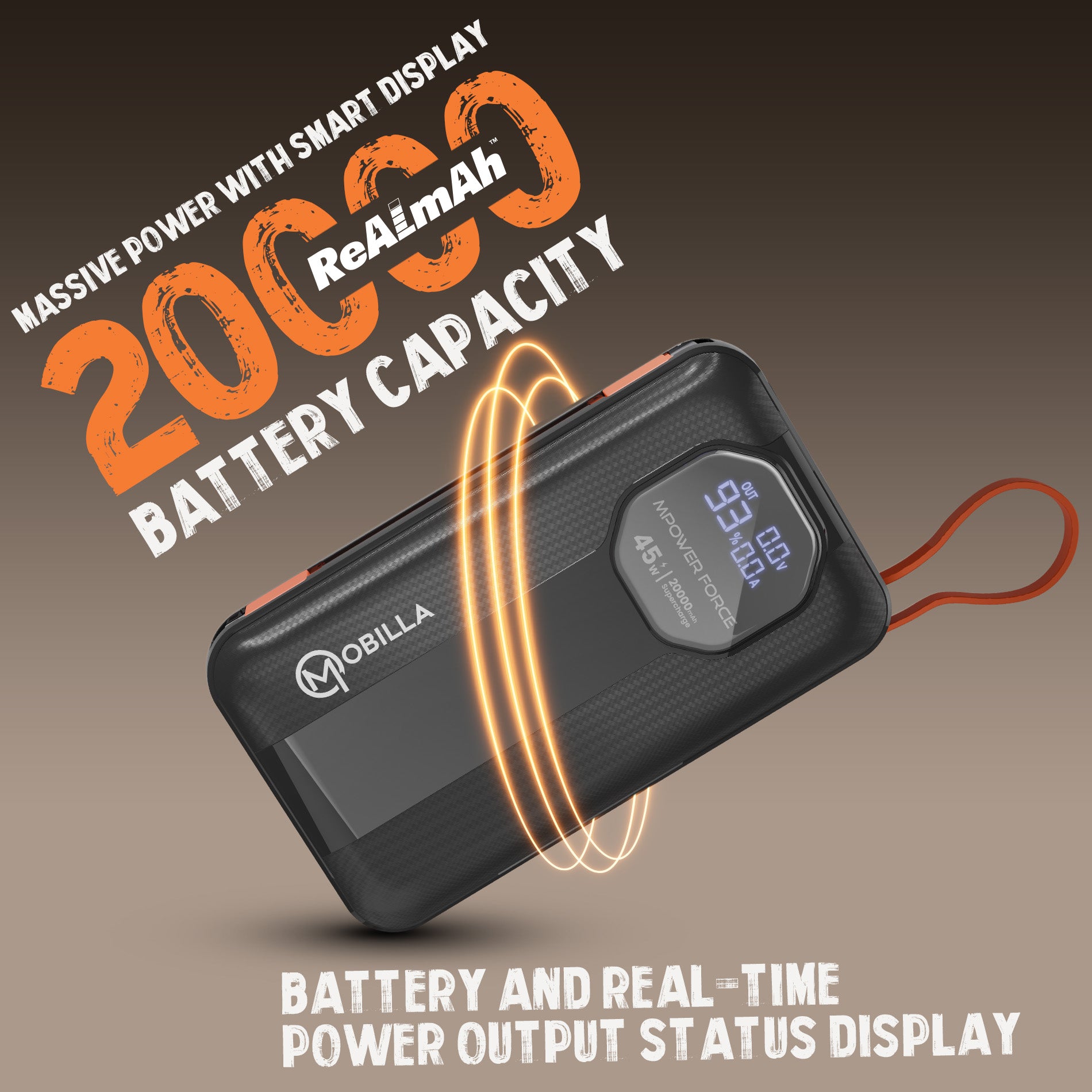 Introducing the MPower Force a premium laptop charging power bank that combines exceptional performance with sleek design. With an impressive 20000mAh battery capacity and a robust 45W power output, this powerhouse effortlessly supports charging for your laptop, smartphone, and other devices, all while maintaining a compact and travel-friendly form. Equipped with a detachable Lightning cable and a built-in Type-C cable, the MPower Force is engineered for versatility, making it the ultimate portable power bank for your everyday and business needs. The real-time power output display indicator ensures you're always in control, while multi-layered protection guarantees safe, reliable performance every time. Whether you're looking for a fast charging power bank for your laptop or a mobile power bank that keeps you powered on the go, the MPower Force stands out as the ideal solution. Designed for those who demand the best power bank experience, it’s the 20000mAh power bank that delivers the reliability, speed, and style to keep up with your fast-paced lifestyle. Make every journey smoother with the MPower Force, your perfect travel power bank.