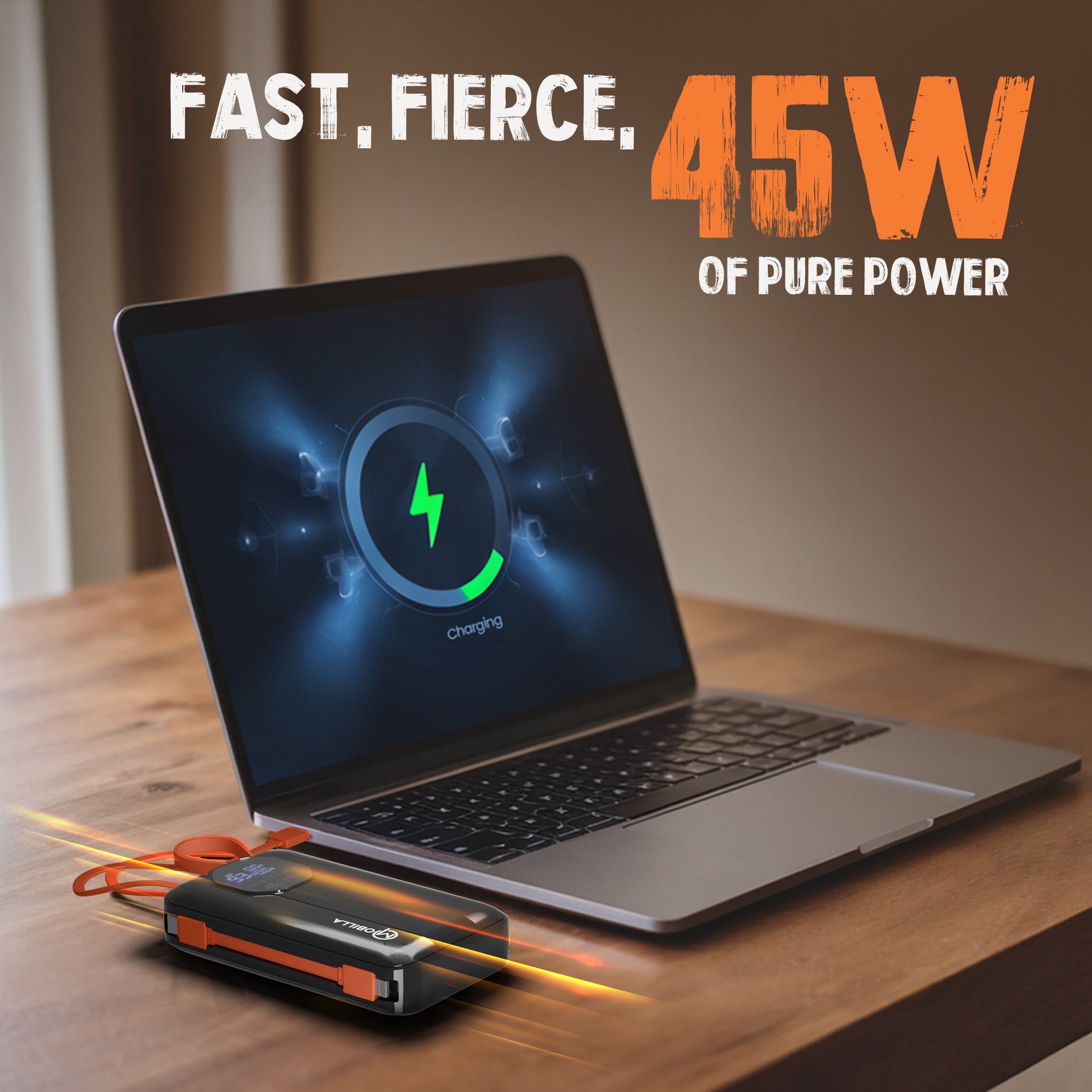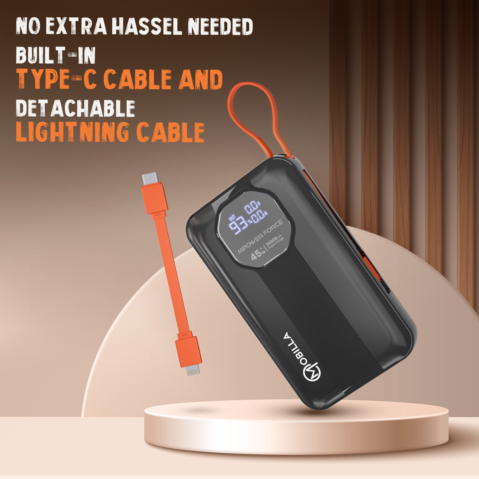 45W Fast Charging | Built-In Type-C Cable | Detachable Lightning Cable | Real-Time Power Display