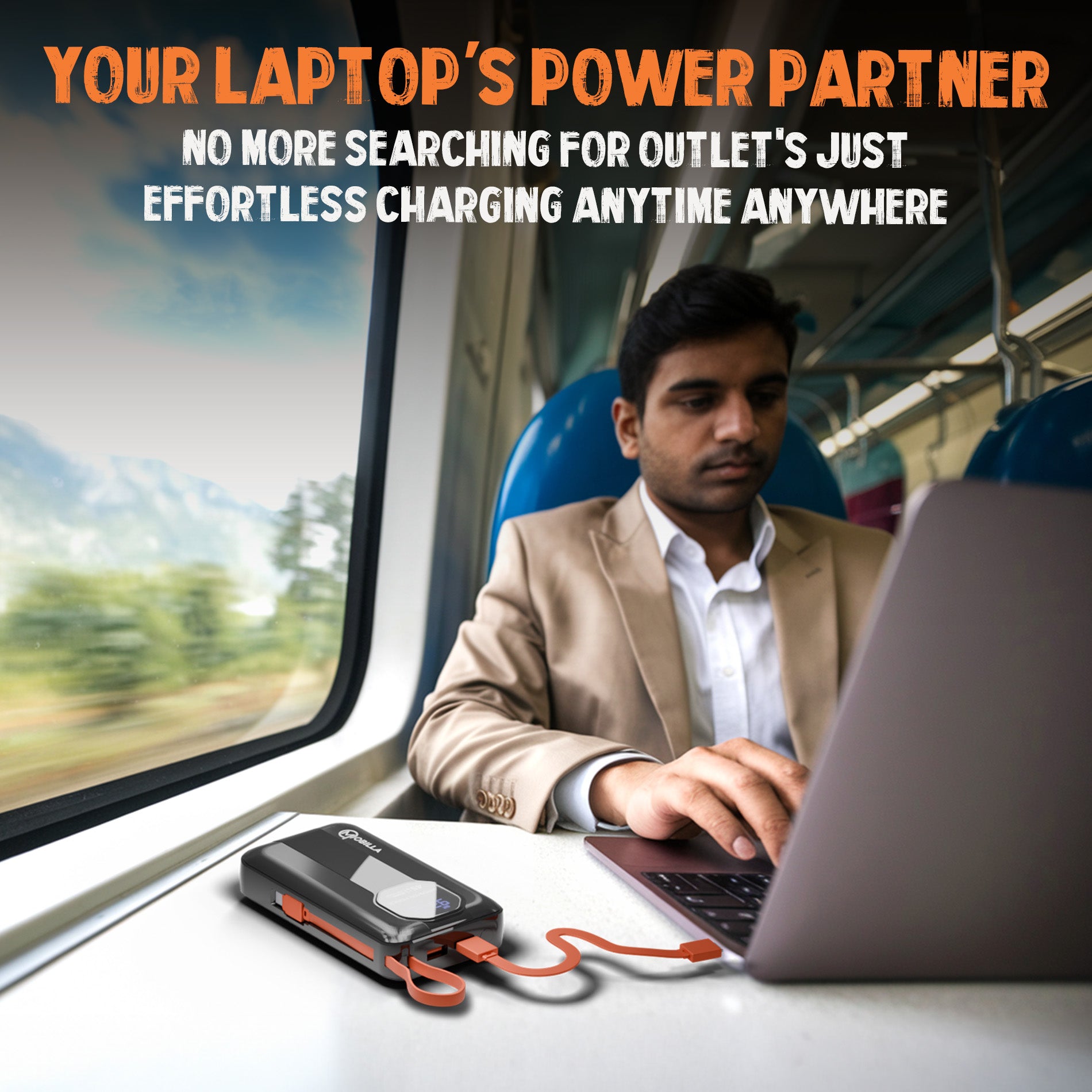 It packs a massive 20,000mAh battery that offers multiple charges for smartphones, tablets, and even laptops—ideal for long days, road trips, or emergencies.