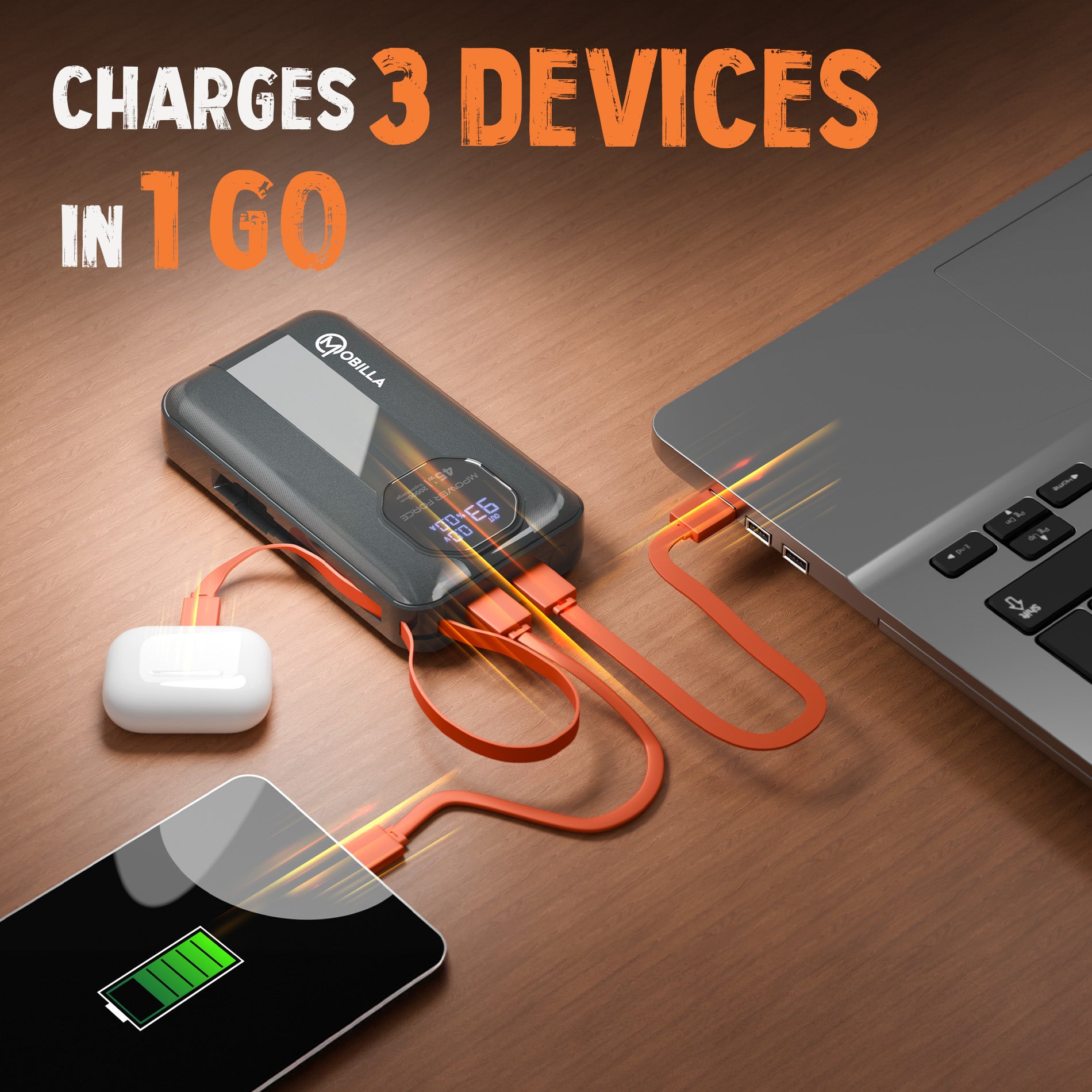 You can charge up to 3 devices simultaneously—great for multitasking or sharing power when everyone’s running low.