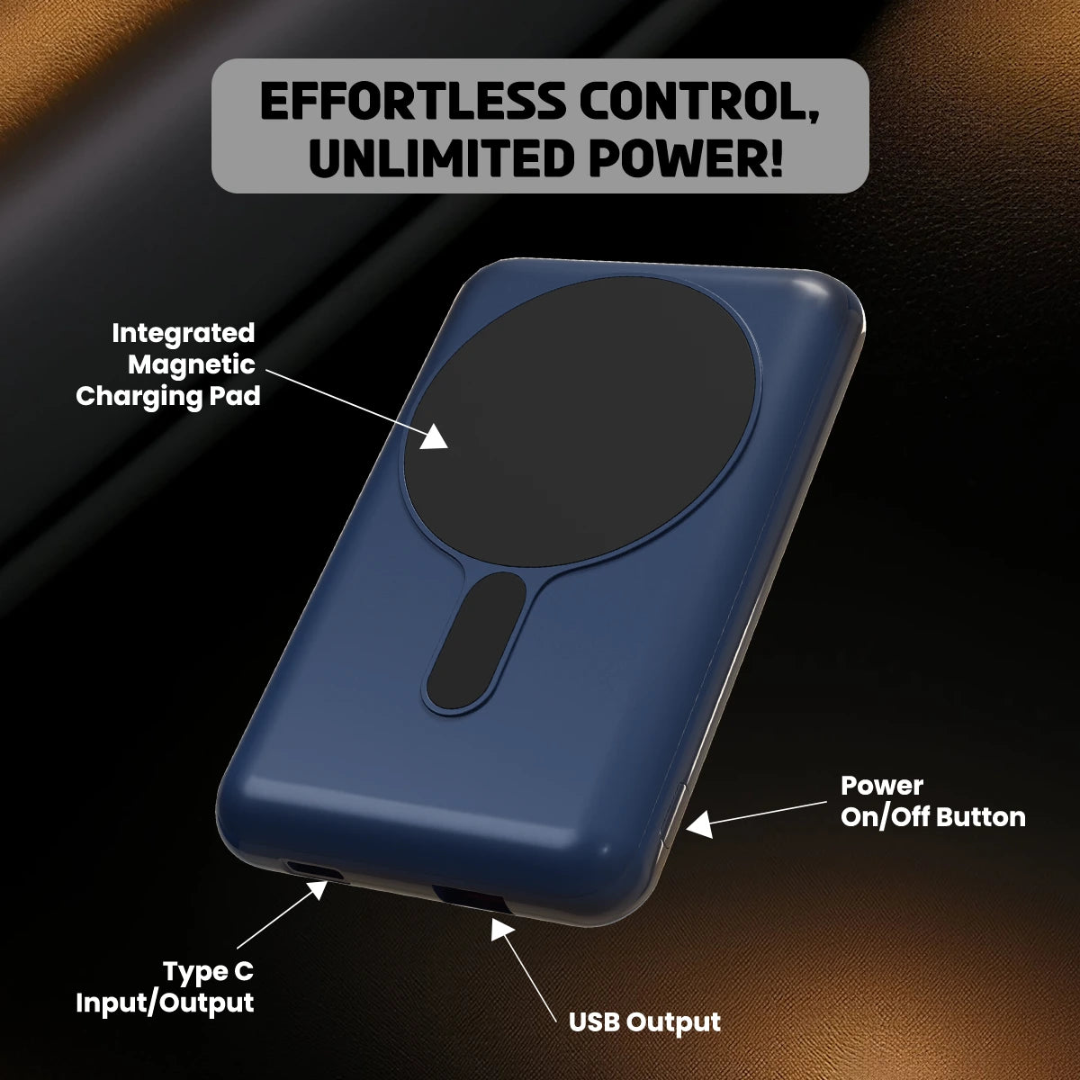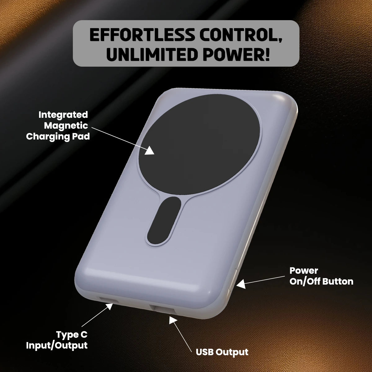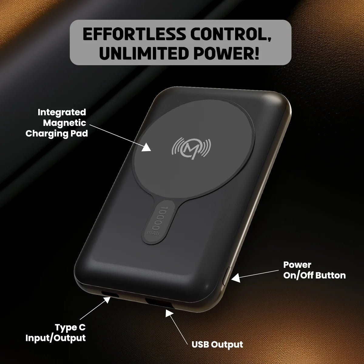 Experience the next level of charging with the Mobilla MPower Mag-1, a wireless power bank designed for seamless convenience. Featuring MagSafe wireless charging and strong magnetic hold, it effortlessly powers up your devices with 15W wireless output and 22.5W Power Delivery for blazing-fast charging. With a 10000mAh battery capacity, this portable power bank ensures your devices stay charged all day. The PD + QC 3.0 technology guarantees efficient power transfer, while the multi-layered protection keeps your devices safe. Equipped with in-built Type-C and Lightning cables, it offers unmatched versatility for all your charging needs. Designed with a stylish matte finish and a compact build, the MPower Mag-1 is easy to carry, making it the best power bank for mobile users on the go. The LED battery indicator keeps you updated on power levels, so you’re never caught off guard. Whether you're looking for the best power bank in India, a wireless charging power bank for iPhone, or a fast charging power bank, the MPower Mag-1 delivers power, style, and performance in one sleek package. Stay charged, stay ahead!