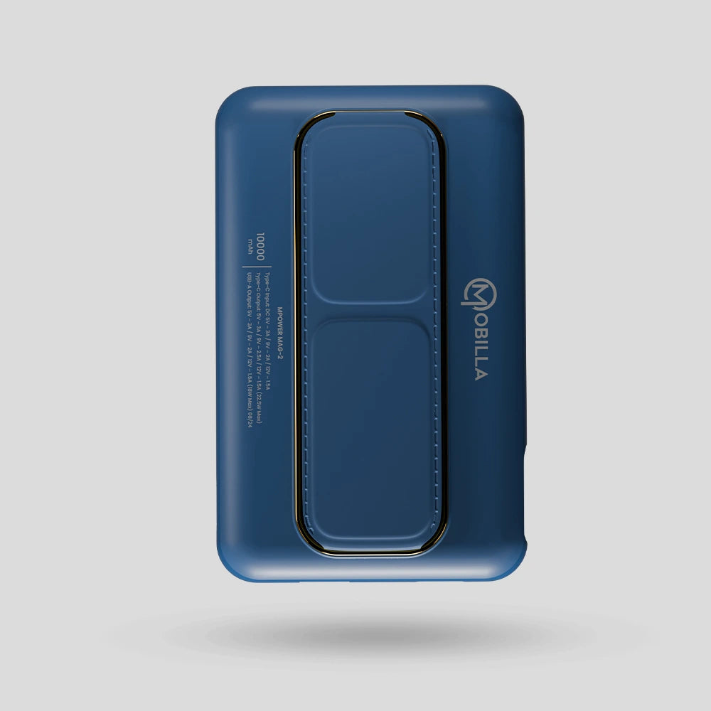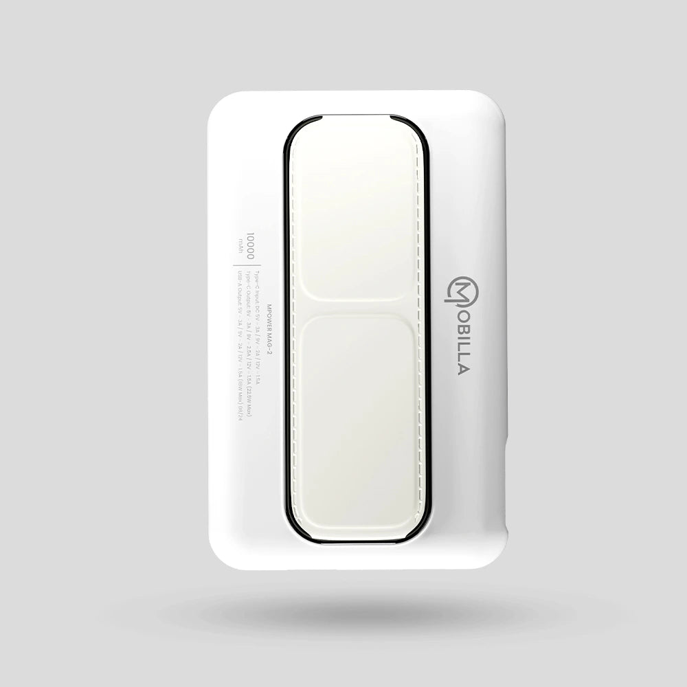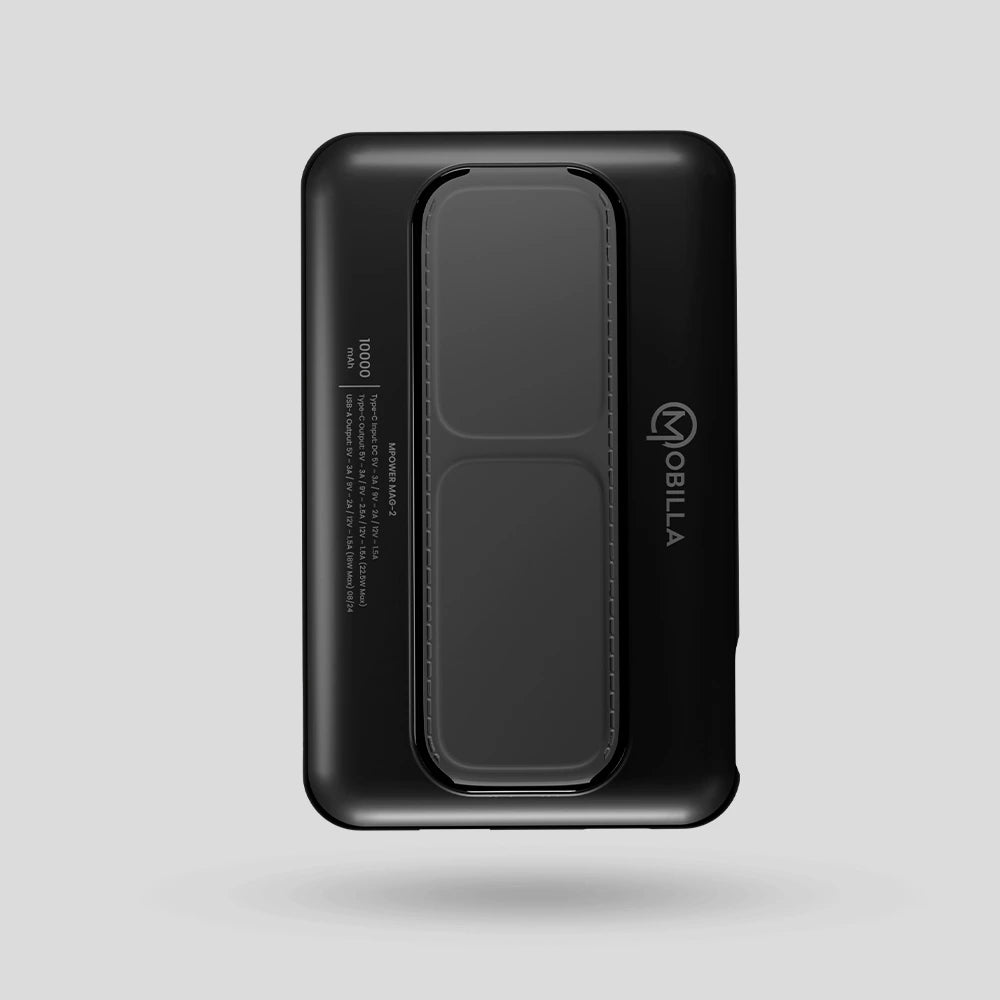 Power up your devices with style and efficiency using the Mobilla MPower Mag 2 – the ultimate MagSafe power bank designed for all your charging needs. Equipped with MagSafe wireless charging and a robust battery capacity of 10000mAh, this wireless charging power bank delivers dependable power wherever you are. Experience super-fast charging with 22.5W Power Delivery and 15W wireless output, supported by PD+QC 3.0 technology for optimised charging speed across multiple devices. The strong magnetic hold keeps your phone secure while charging, ensuring uninterrupted power on the go. Plus, the multi-layered protection guards against overheating, overcharging, and short circuits, making it the best power bank for Android and iOS devices. Designed with convenience in mind, the MPower Mag 2 features a stylish & compact design with a built-in strap & stand for hands-free use – perfect for video calls, watching movies, or browsing. Whether you're looking to buy a power bank online or need a reliable magsafe powerbank 10000mAh fast charging solution, the MPower Mag 2 is the perfect companion for your daily adventures. Choose Mobilla's branded power bank for seamless charging on the go. Power up your life with the MPower Mag 2 today!