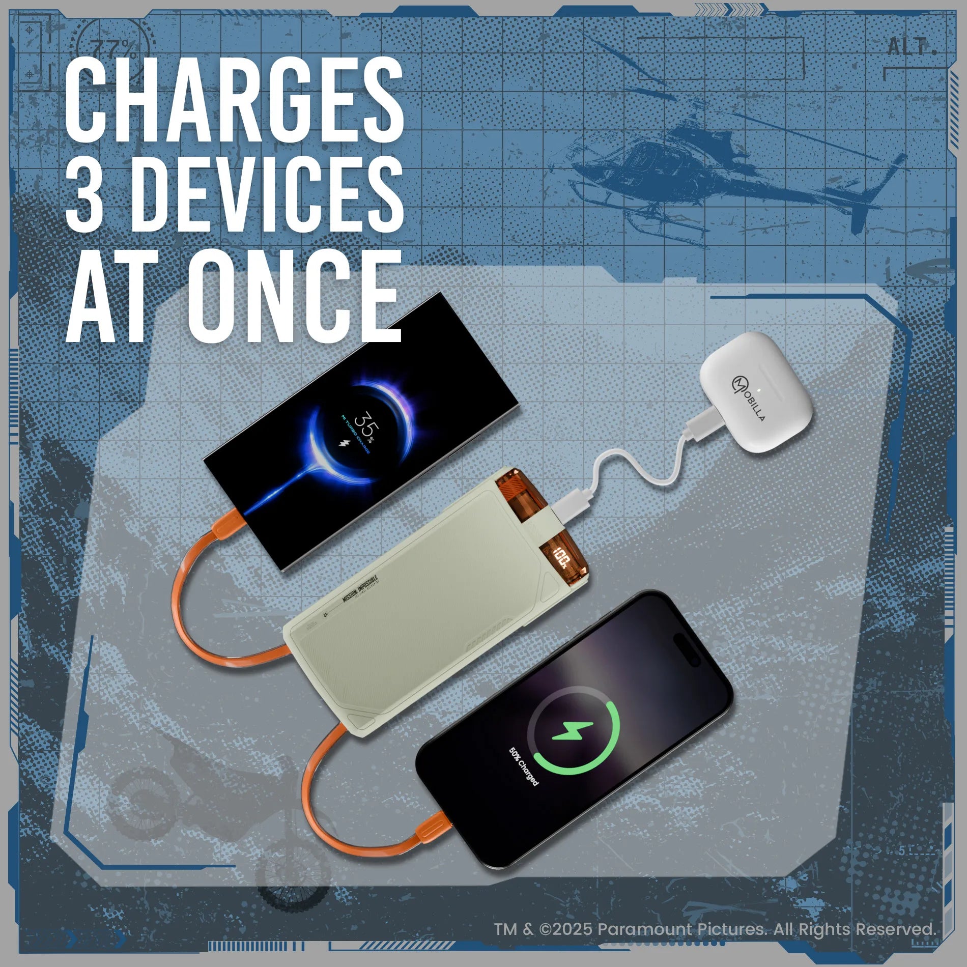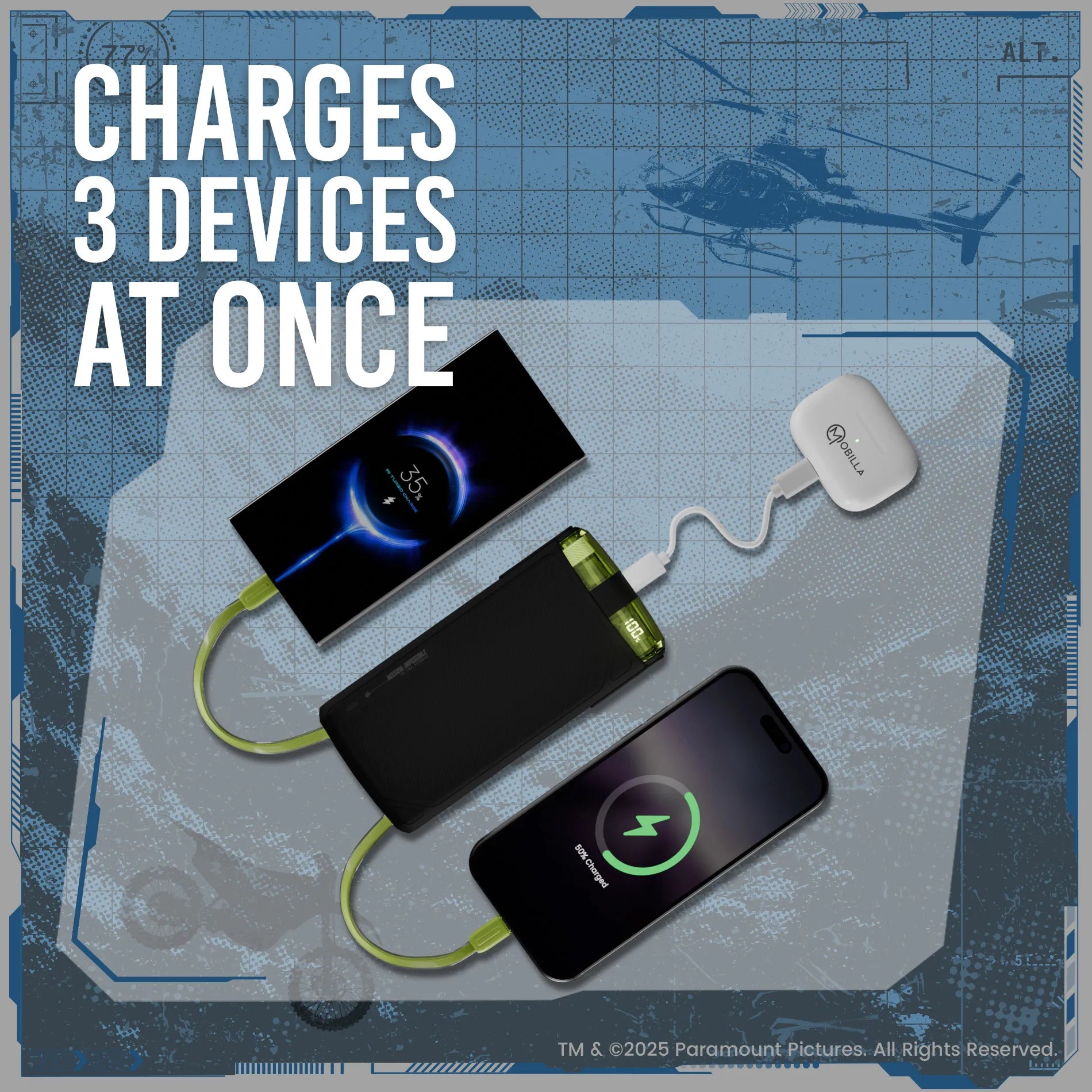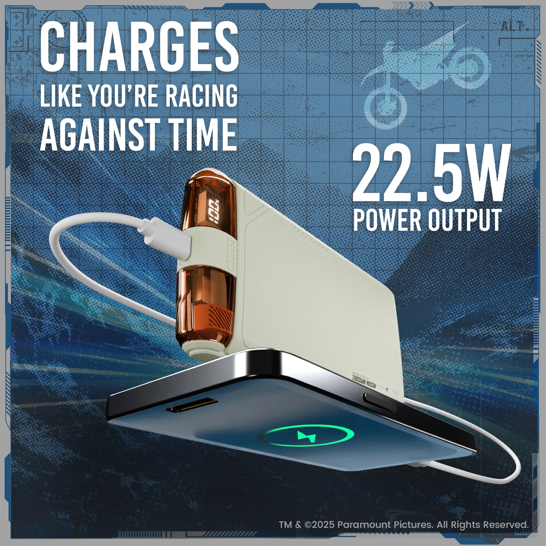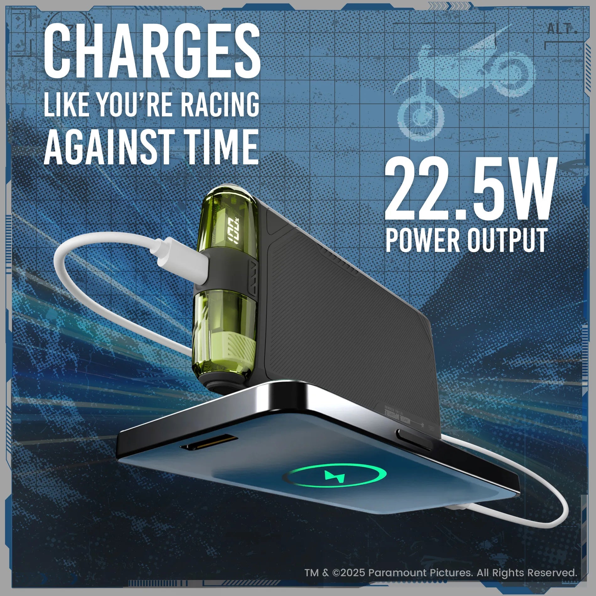 Power meets style with the MPower X7, a 10000mAh power bank built for those who need speed and reliability on the go. Designed with a sleek profile, this compact power bank delivers a powerful 22.5 watt power bank output using PD+QC 3.0 technology, ensuring devices are charged quickly and efficiently. Its integrated Type C and lightning cable power bank setup eliminates the need for extra wires, while the smart 4-in-1 charging power bank functionality lets you power up four devices at once. Whether it's a smartphone, tablet, or earbuds, this fast charging power bank handles it all with ease. The digital display indicator keeps you informed, and multi-layered protection ensures safe charging. It's also flight friendly, making it perfect for travelers. Part of the Mission Impossible Edition, it’s crafted for those who expect more from their gear—a true premium power bank experience.