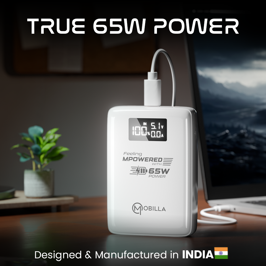 Power, reimagined the MPower Z1 blends performance and precision in a way that elevates your everyday essentials. With a refined form and robust internals, this 15000mAh power bank delivers up to 65W output, designed to handle everything from your phone to your laptop with remarkable speed and stability. It’s the kind of fast charging power bank that keeps pace with how you move, work, and create. More than just a portable power bank, the Z1 is engineered for versatility. With dual Type-C ports, a USB-A charging port, and quick charging input, it adapts seamlessly to your tech ecosystem—making it a true multi-device power bank. The LED display adds a modern touch, offering real-time insights into output and battery levels, while the trusted ReALmAh™ Battery and multi-layered protection ensure consistent, safe performance. Whether it’s a last-minute meeting or a long journey ahead, this travel power bank delivers quietly, yet powerfully. Subtle in design, bold in performance it fits right into the world of those who prefer premium without the need to say it. So whether you’re exploring options for a laptop power bank, a universal power bank, or simply searching for the best power bank, the Z1 stands tall proving that smart power can also look the part.