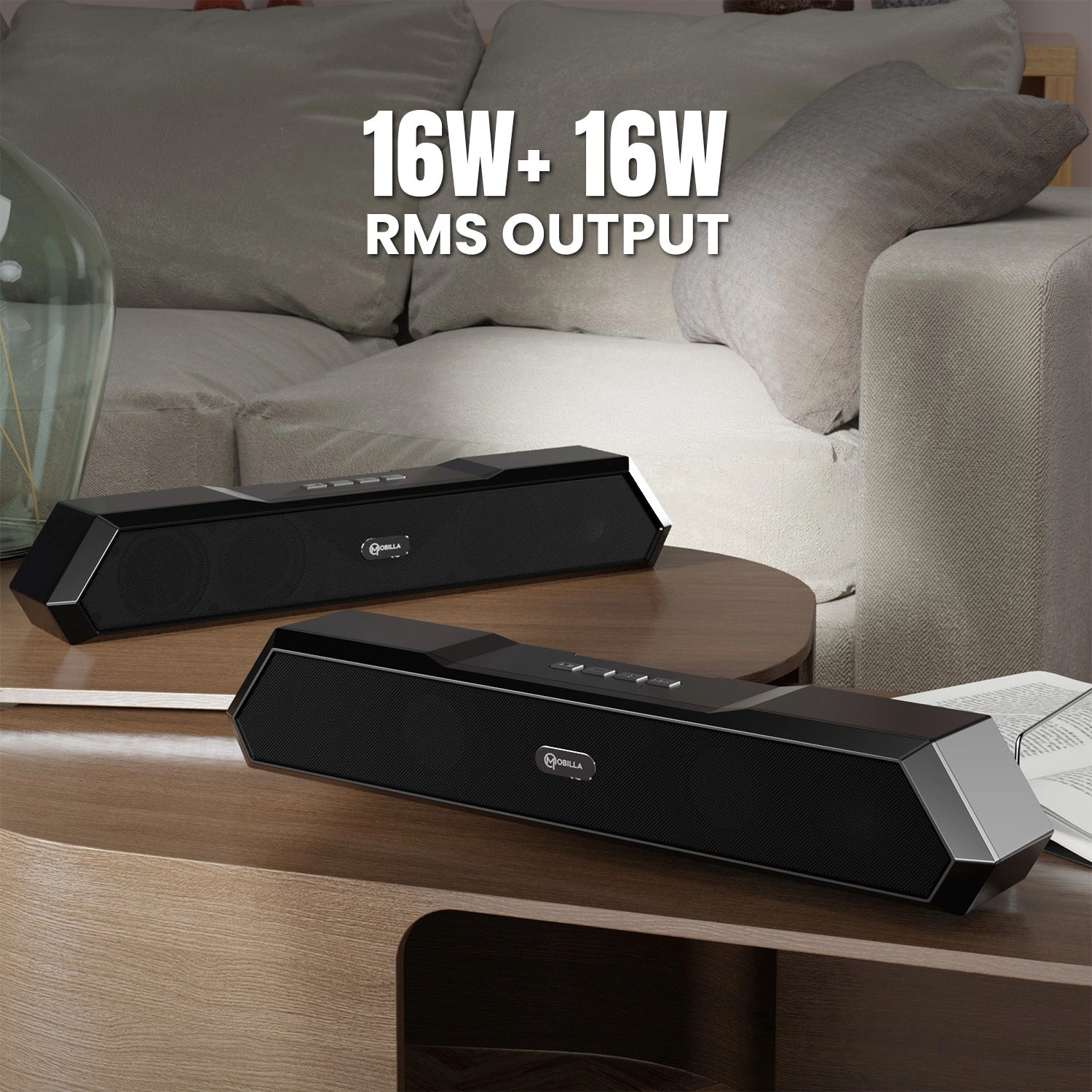 15 Hours Music Playtime | TWS Function | Dual Powerful Speaker | Sleek Design | Lightweight | Multiple Connectivity | 16W RMS Output | Call Function | Easy Music Controls | Built-In FM Radio