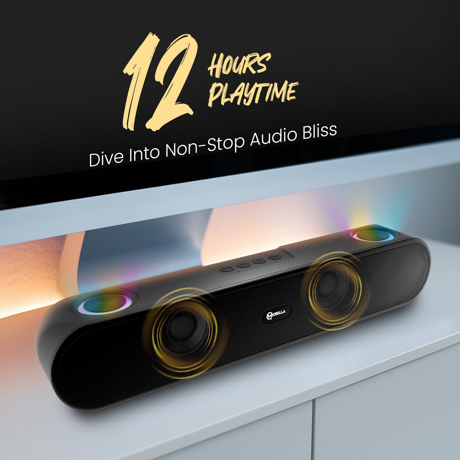 Experience the ultimate party vibe with the Mobilla MRock 105, your go-to party speaker Bluetooth with wonderful RGB lights. Designed for those who live for music, this portable disco speaker brings the beat wherever you go. With up to 12 hours of music playtime and a powerful 16W RMS output, it ensures your playlist never stops. Create an immersive sound experience with its dual-powerful speaker design, delivering deep bass and crystal-clear audio. Want to turn up the volume? Use the TWS function to pair two MRock 105 speakers for a true stereo effect. And with dynamic RGB lights that pulse to the beat, you can instantly transform any room into a dance floor. Stay connected with multiple connectivity options like AUX, TF Card, USB input, and Bluetooth V5.2 for seamless music streaming. Need to make a quick call? The call function has you covered. Plus, with a built-in FM radio, you can tune into your favourite stations anytime. Designed with a sleek and lightweight build, the MRock 105 is easy to carry, making it the perfect Bluetooth portable party speaker with FM radio. And with Type-C charging, powering up is fast and efficient. Looking to buy a speaker online? Elevate your music game with the MRock 105 – the ultimate choice for any occasion!