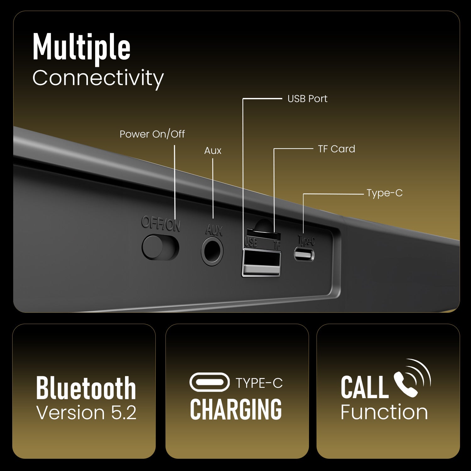 Not at all. While Bluetooth 5.2 ensures smooth wireless streaming, the MRock 105 also supports AUX, USB, TF card, and FM radio—giving you multiple ways to enjoy your music.