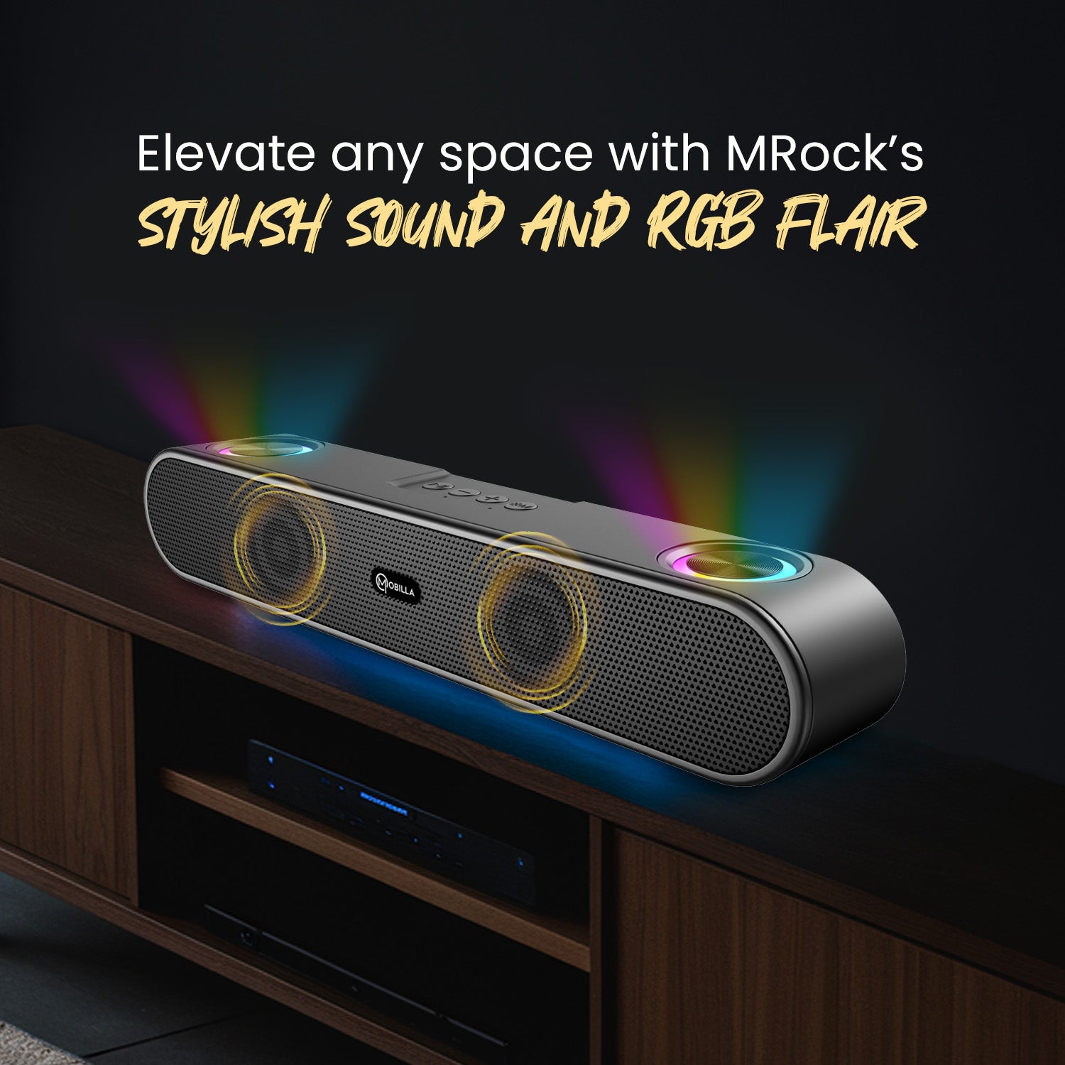 Whether you're working, relaxing, or hosting a quick hangout, the MRock 105 keeps the energy alive with 12 hours of playback sound, vibrant RGB lights, hands-free calling, and versatile playback options, making your everyday moments more exciting.
