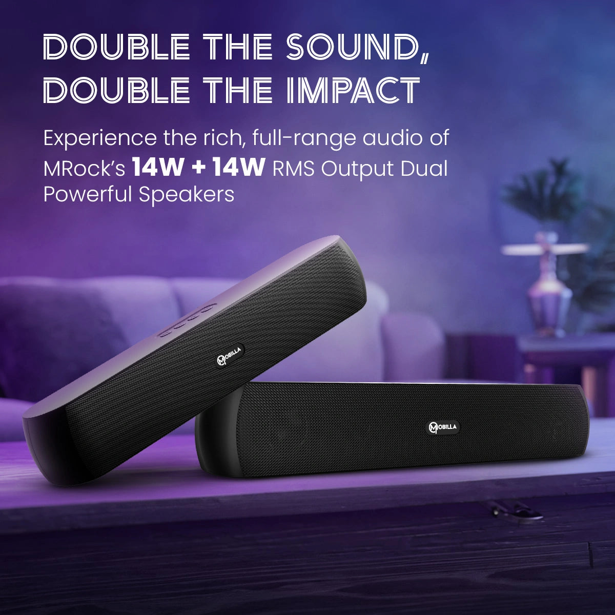 TWS stands for True Wireless Stereo. It lets you pair two MRock 201 soundbars together—one as the left channel, the other as the right—for a stereo experience with double the sound impact.
