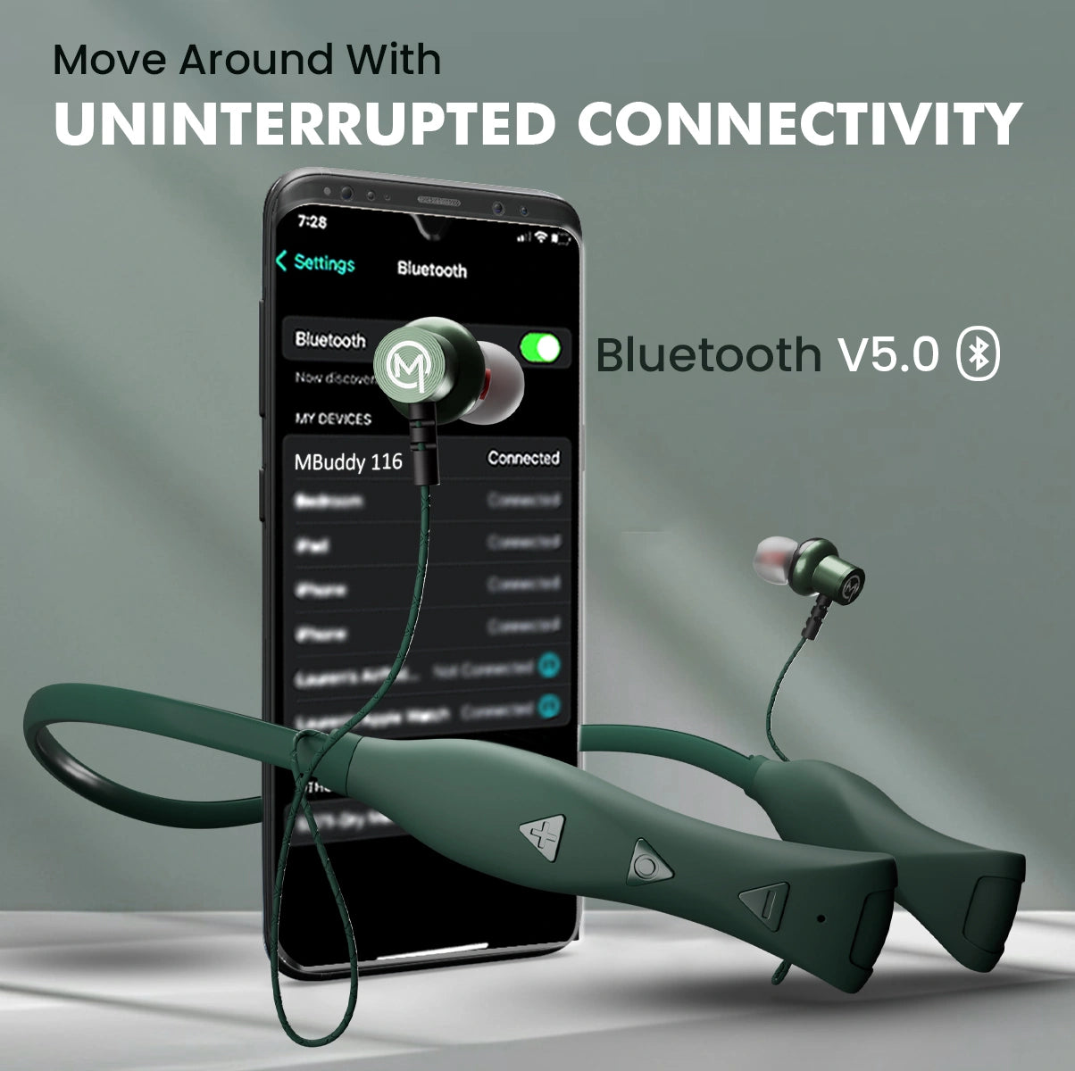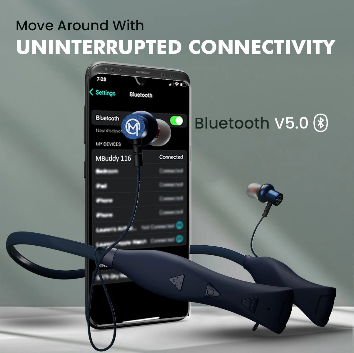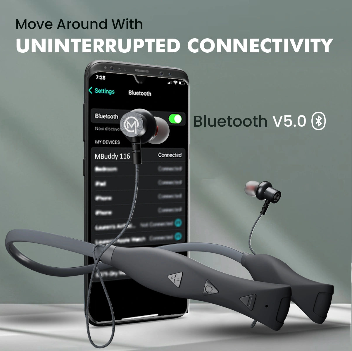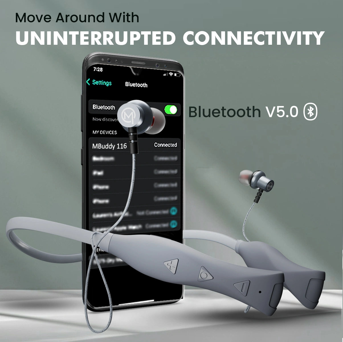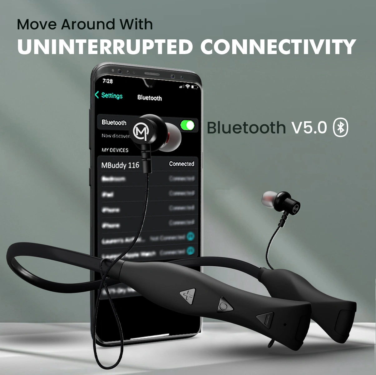 MBuddy 116 provides 51 hours of playback, snug fit for long use, fast charging, immersive sound, and magnetic earbuds.
