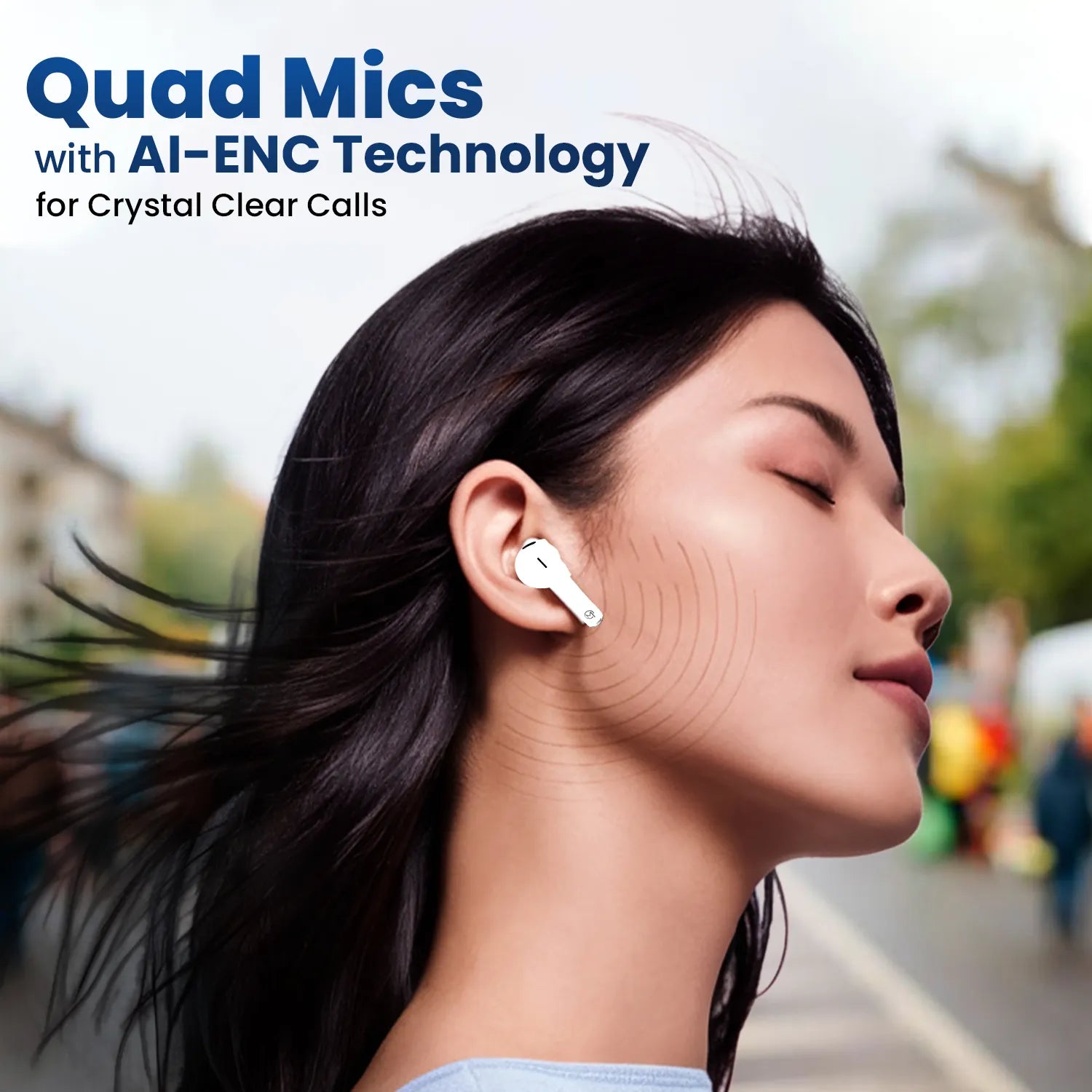 50 Hours Music Playtime | 4 Mics With Environmental Noise Cancellation | Swipe Touch Control | In Ear Detection Technology | Wireless Charging | Instant Auto Connect | Bluetooth V5.3