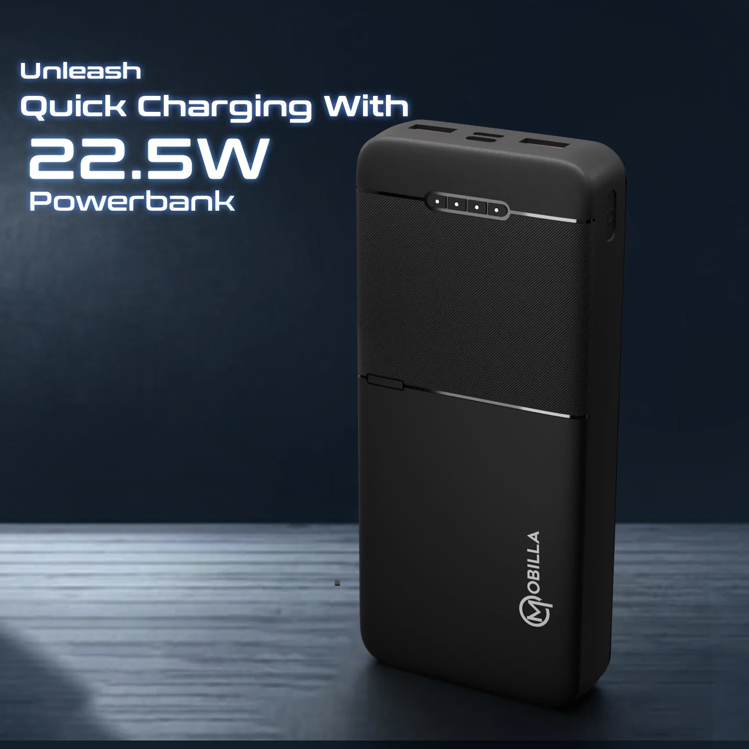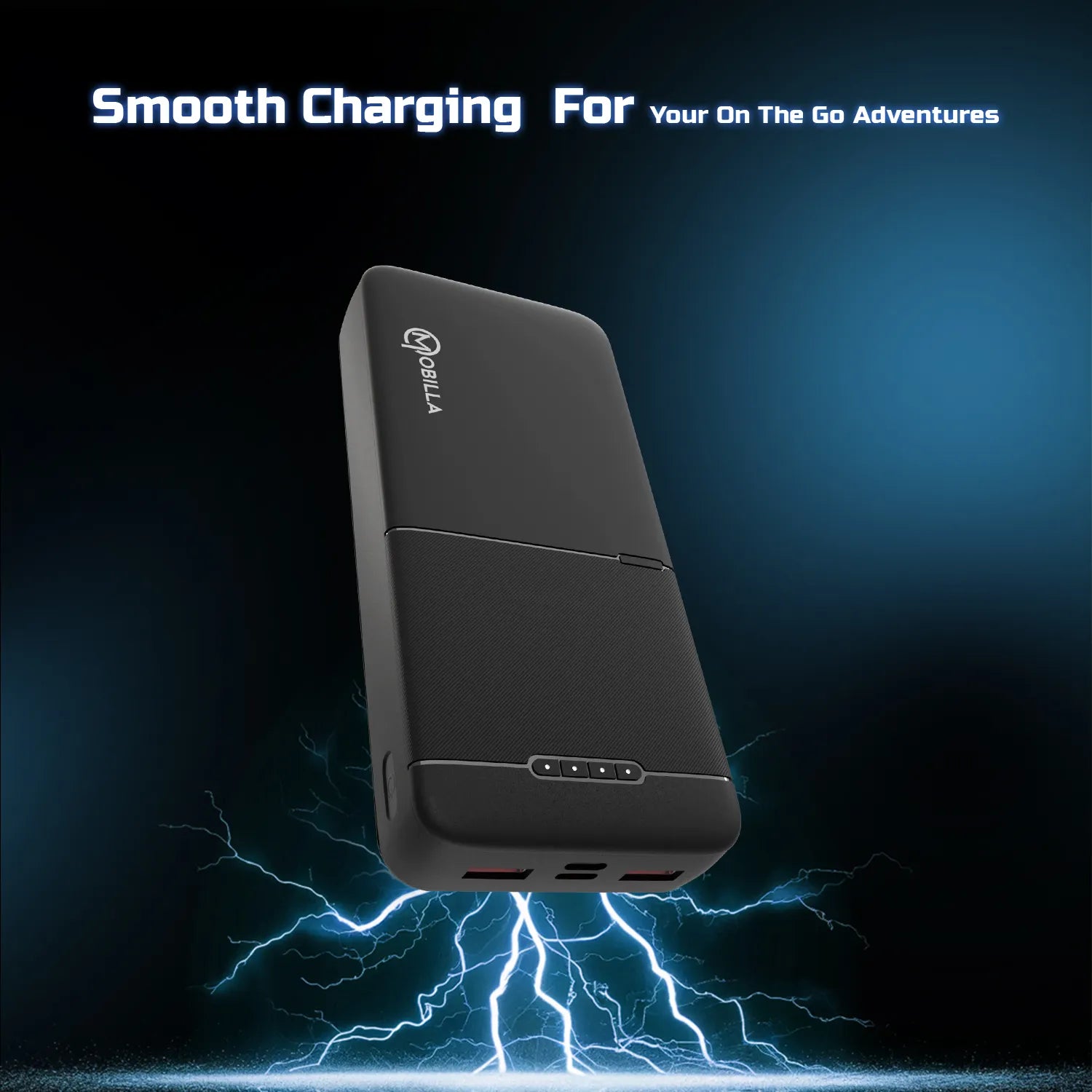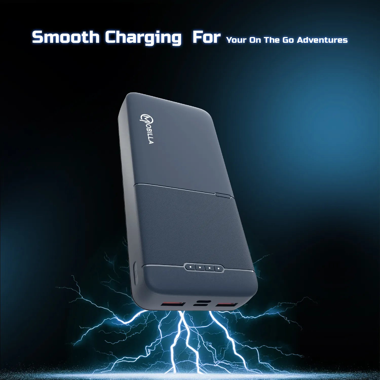 Meet the Mobilla MPower 723 – your ultimate solution for staying powered up on the go. With an impressive battery capacity of 20000mAh, this power bank for long-lasting use is perfect for keeping your smartphone, mobile, and tablet charged through your busiest days. Featuring dual USB ports, the MPower 723 offers universal compatibility, allowing you to charge multiple devices simultaneously. Its travel-friendly design and anti-slip texture ensure it remains secure in your hand or bag, making it the ideal choice for adventures and everyday use. Available in sleek colours – Grease Black, Junglee Green, and Royal Blue – this slim lightweight power bank balances both style and functionality. Whether you’re looking to buy a power bank 20000mAh online or need a pocket-friendly power bank for hiking and travel, the MPower 723 delivers reliable performance. Choose Mobilla for a branded power bank that combines power, style, and convenience. Power up with the MPower 723 today!