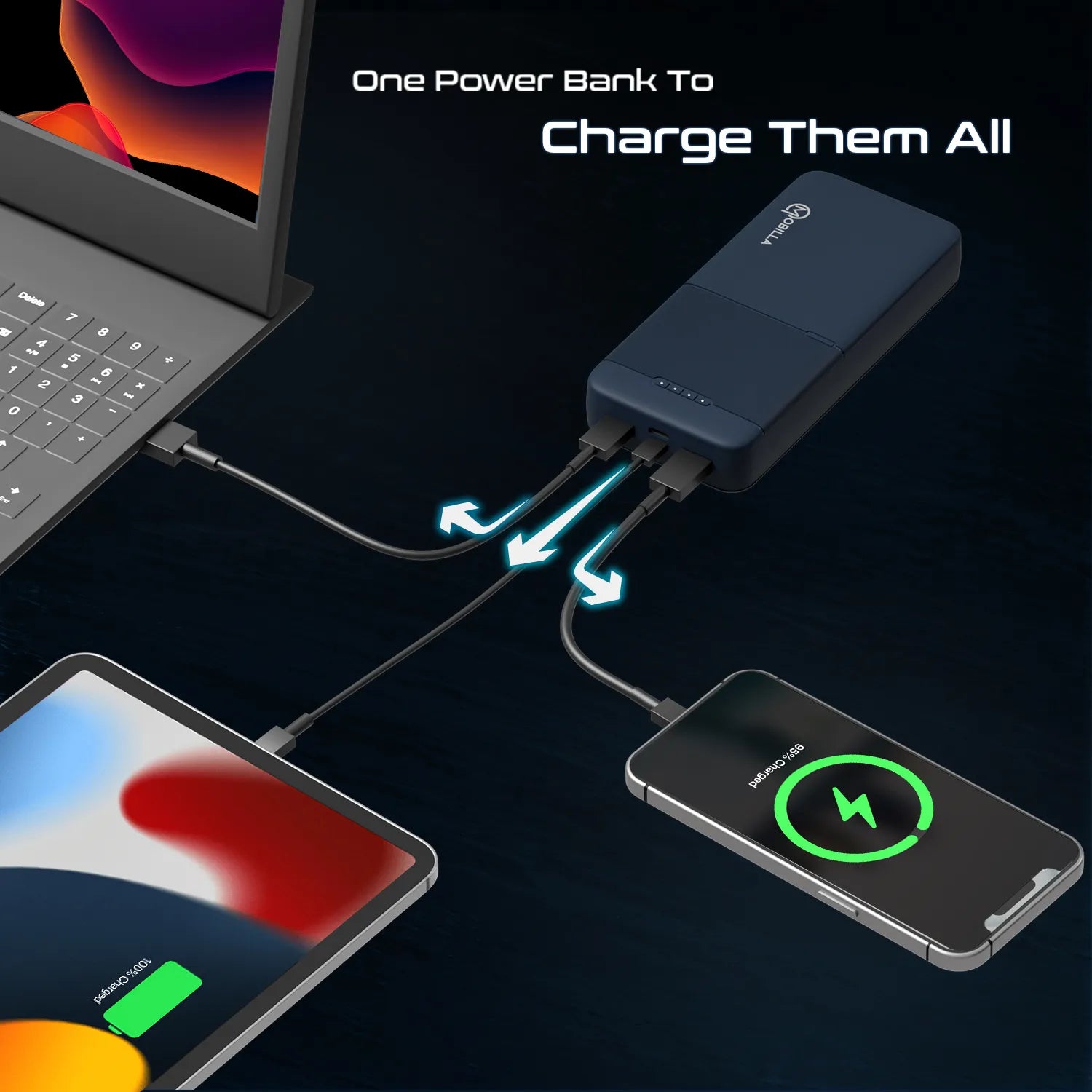 MPower 723 packs a 20,000mAh battery, 22.5W fast charging, dual USB ports, and can charge 3 devices at once compact, powerful, and ready for your daily hustle.